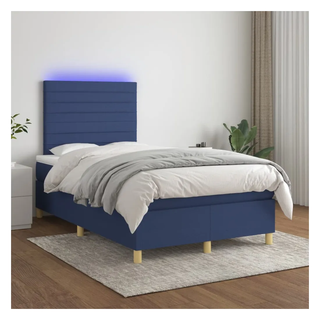 Utilisez ce sommier tapissier avec matelas et LED pour profiter d'un sommeil réparateur ! C'est le point central de votre chambre à coucher. Tissu durable : le tissu présente un aspect simple et épuré, et il est respirant et durable.Tête de lit pratique : la tête de lit est réglable en hauteur selon vos préférences. La tête de lit vous offre un excellent soutien du dos lorsque vous êtes assis dans votre lit pour lire ou regarder la télévision.Bande LED colorée : apportez de l'éclairage dans l'obscurité avec des lumières LED colorées !Matelas à ressorts ensachés : le ressort ensaché individuel intégré est connu pour sa très haute qualité tout en assurant un haut niveau de durabilité et d'adaptabilité. Il peut absorber efficacement le bruit et les chocs causés par les sauts et les rotations.Protège-matelas doux pour la peau : le protège-matelas est recouvert d'un tissu résistant et doux pour la peau, ce qui le rend souple et confortable. Remarque :Pour des raisons d'hygiène, le matelas ne peut pas être retourné si l'emballage est retiré ou ouvert.Seule la partie avec un symbole de ciseaux peut être coupée et seule la partie avec l'USB continuera à fonctionner comme avant.Chaque produit est livré avec un manuel de montage dans la boîte pour un montage facile.Ce produit est doté d'un connecteur USB, mais la source d'alimentation certifiée de USB 5V n'est pas incluse.