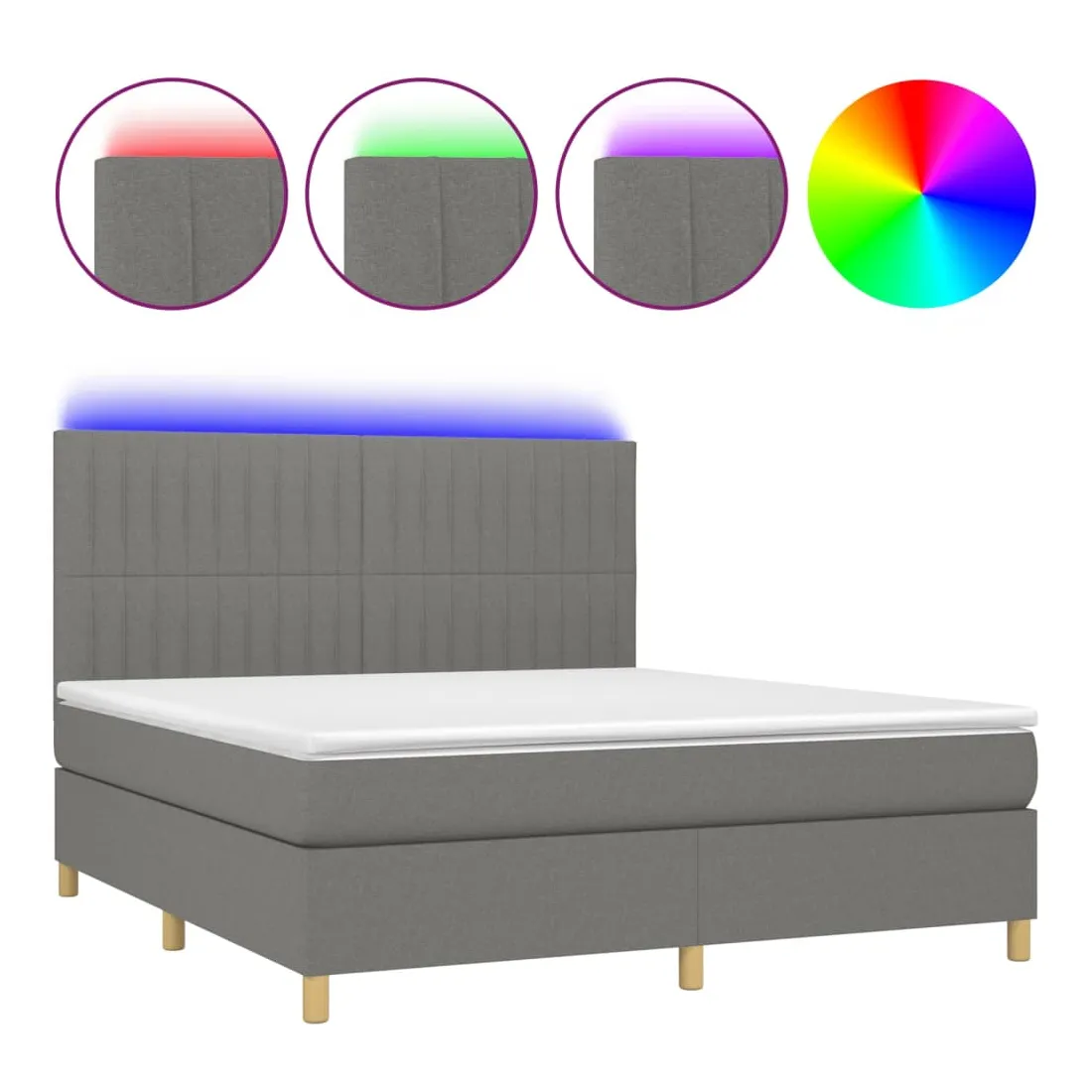 Sommier à lattes de lit et matelas et LED Gris foncé 180x200 cm