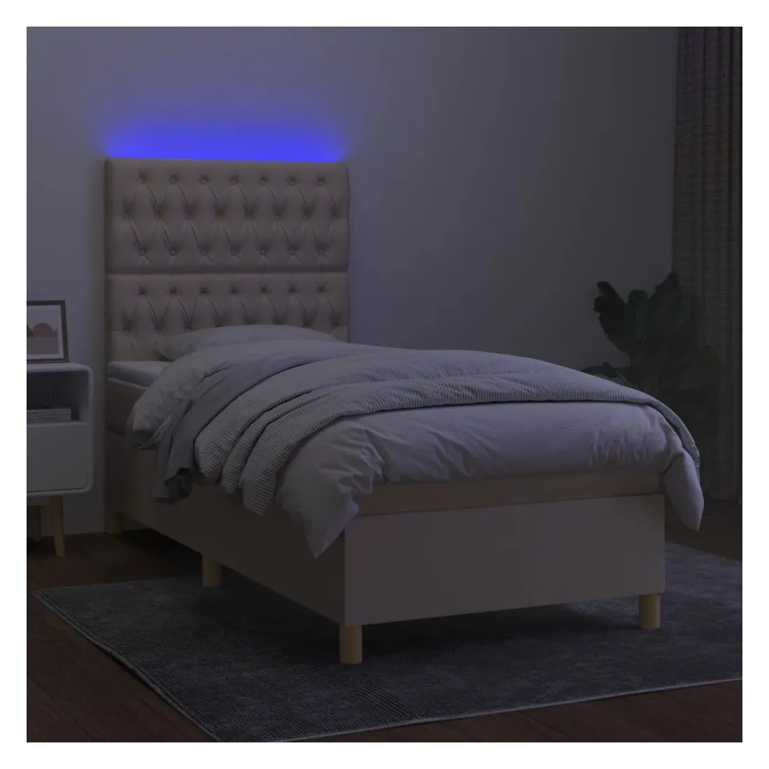 Sommier à lattes de lit et matelas et LED Crème 90x200 cm Tissu