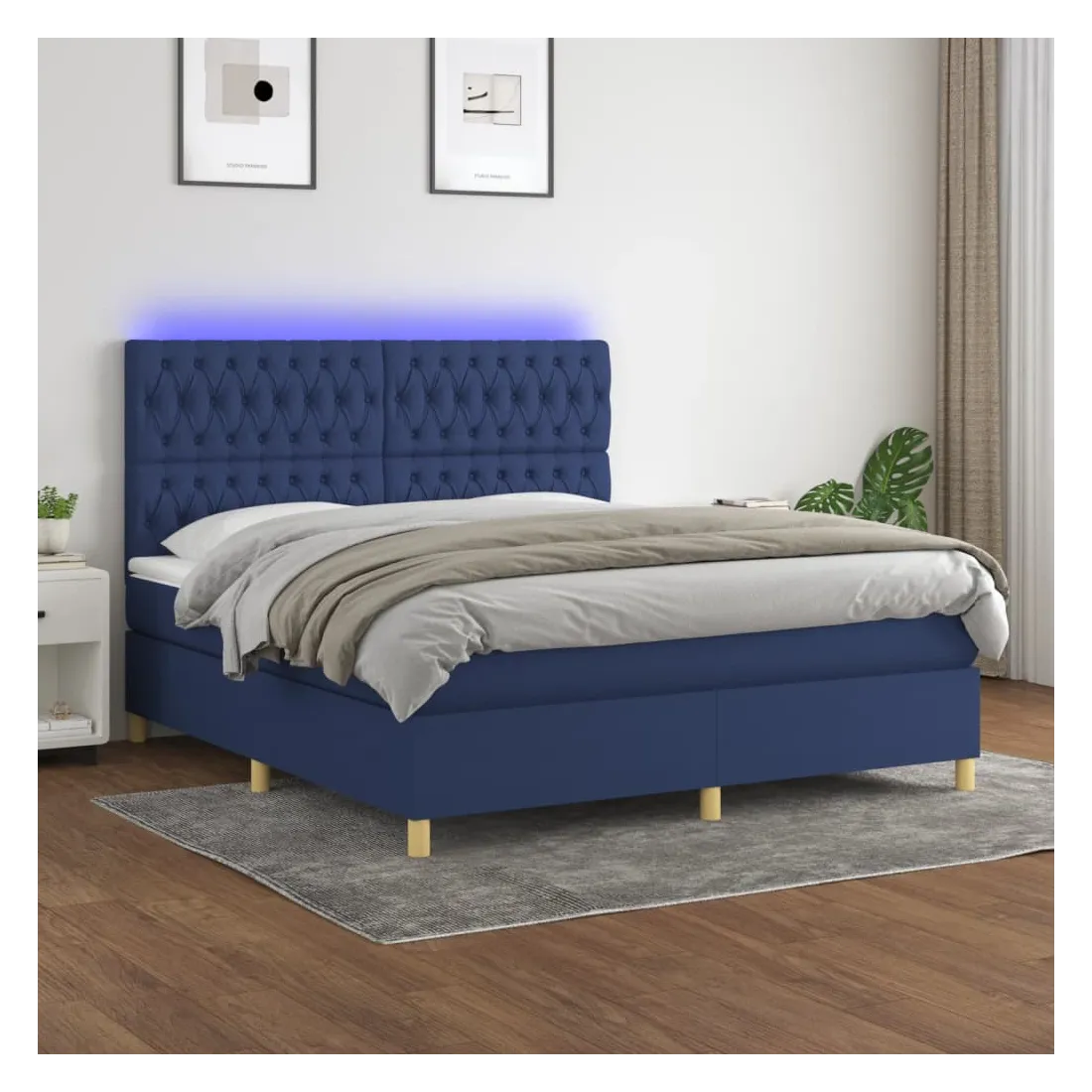 Sommier à lattes de lit et matelas et LED Bleu 160x200 cm Tissu