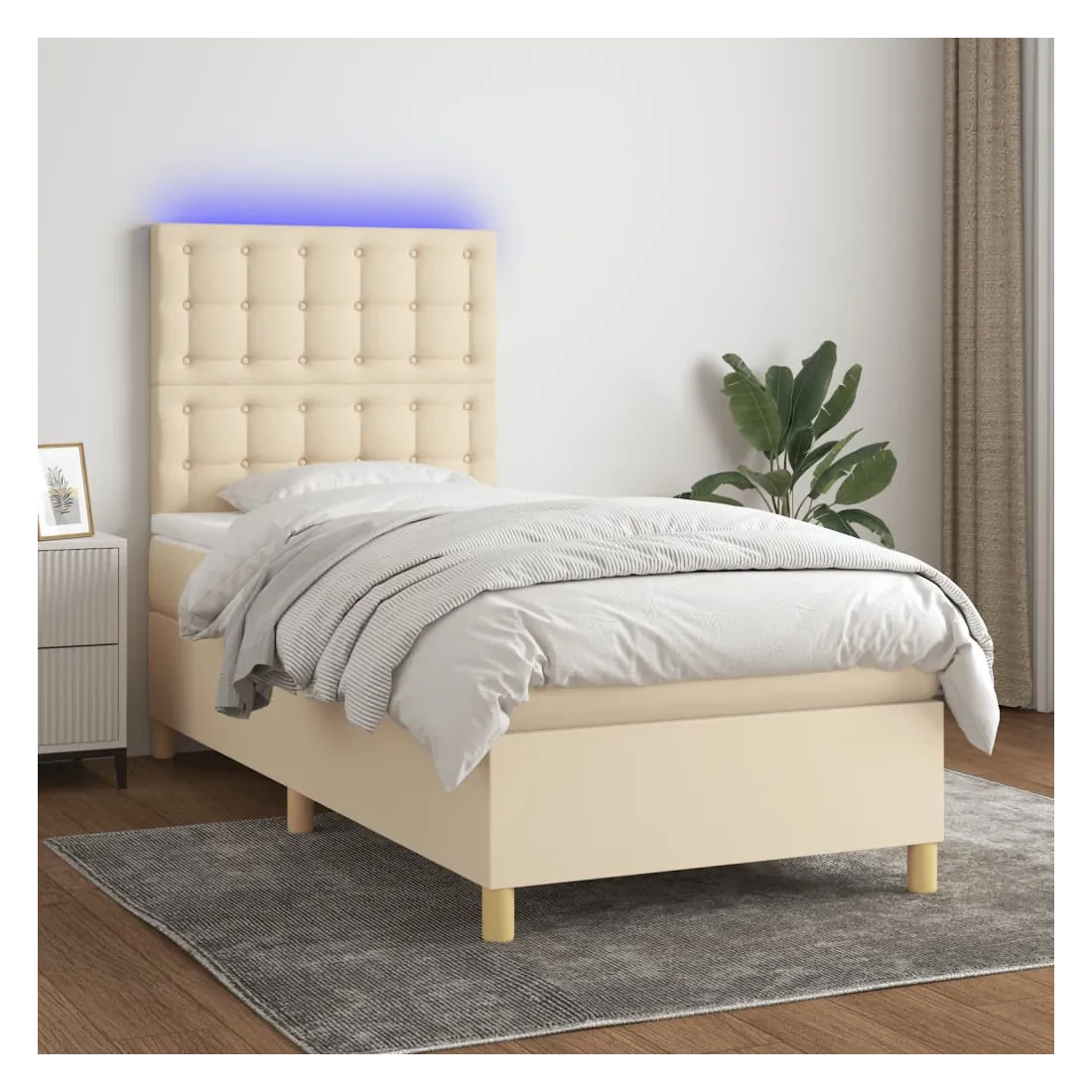Utilisez ce sommier tapissier avec matelas et LED pour profiter d'un sommeil réparateur ! C'est le point central de votre chambre à coucher. Tissu durable : le tissu présente un aspect simple et épuré, et il est respirant et durable.Tête de lit pratique : la tête de lit est réglable en hauteur selon vos préférences. La tête de lit vous offre un excellent soutien du dos lorsque vous êtes assis dans votre lit pour lire ou regarder la télévision.Bande LED colorée : apportez de l'éclairage dans l'obscurité avec des lumières LED colorées !Matelas à ressorts ensachés : le ressort ensaché individuel intégré est connu pour sa très haute qualité tout en assurant un haut niveau de durabilité et d'adaptabilité. Il peut absorber efficacement le bruit et les chocs causés par les sauts et les rotations.Protège-matelas doux pour la peau : le protège-matelas est recouvert d'un tissu résistant et doux pour la peau, ce qui le rend souple et confortable. Remarque :Pour des raisons d'hygiène, le matelas ne peut pas être retourné si l'emballage est retiré ou ouvert.Seule la partie avec un symbole de ciseaux peut être coupée et seule la partie avec l'USB continuera à fonctionner comme avant.Chaque produit est livré avec un manuel de montage dans la boîte pour un montage facile.Ce produit est doté d'un connecteur USB, mais la source d'alimentation certifiée de USB 5V n'est pas incluse.