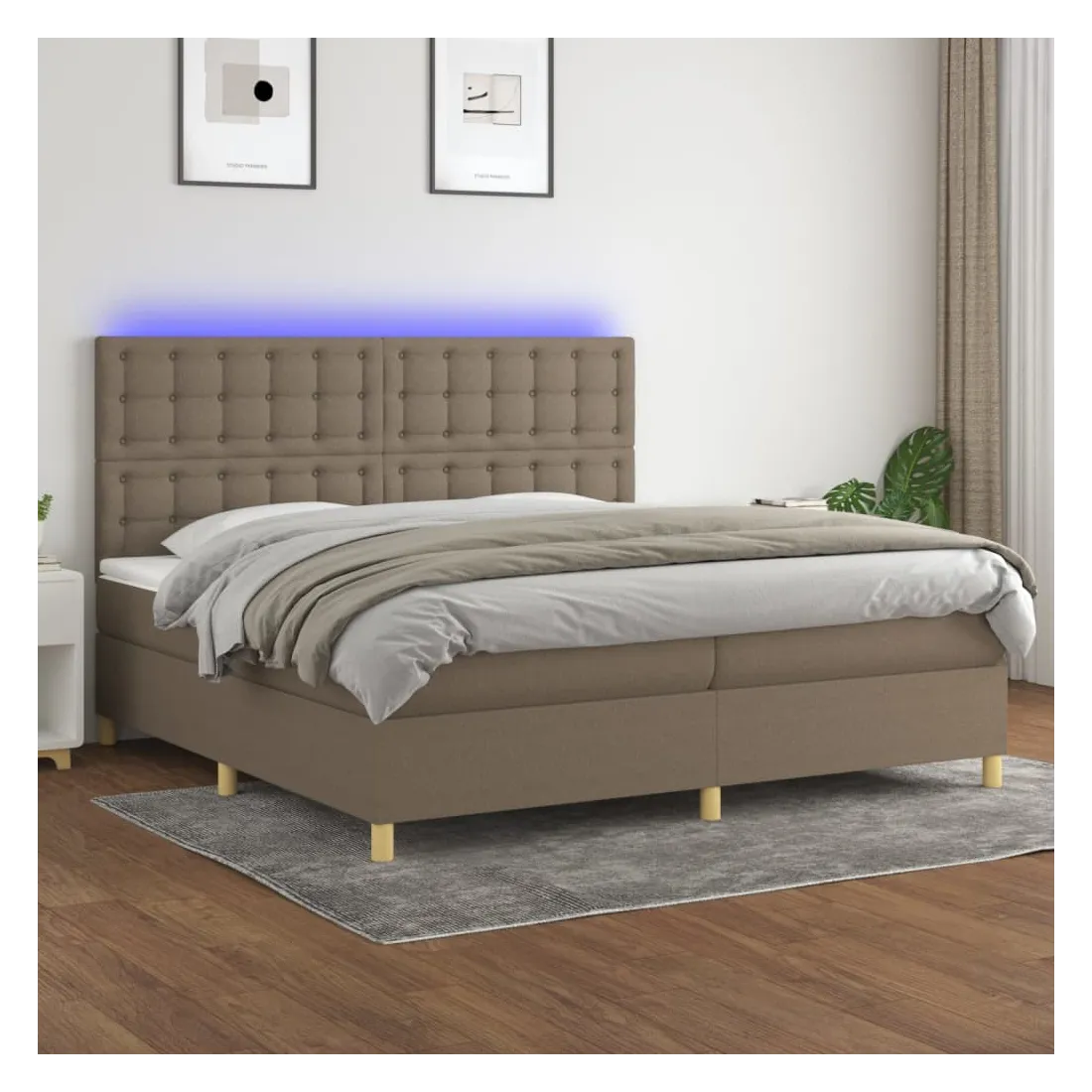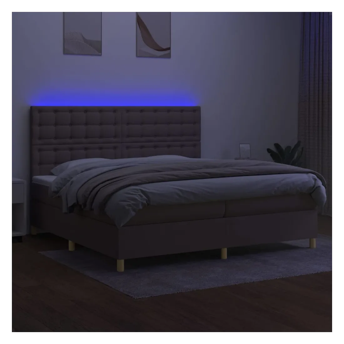 Sommier à lattes de lit et matelas et LED Taupe 200x200cm Tissu