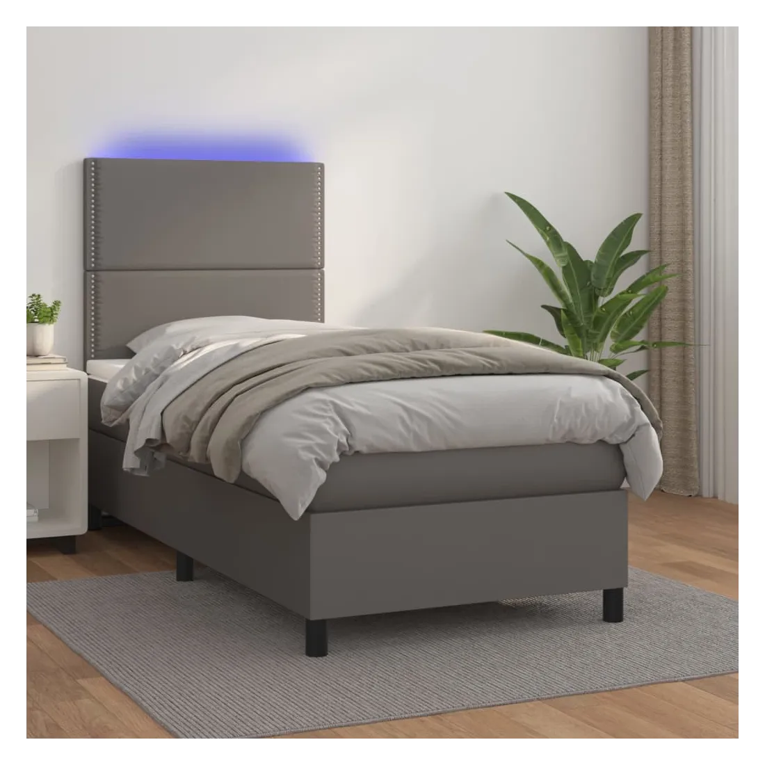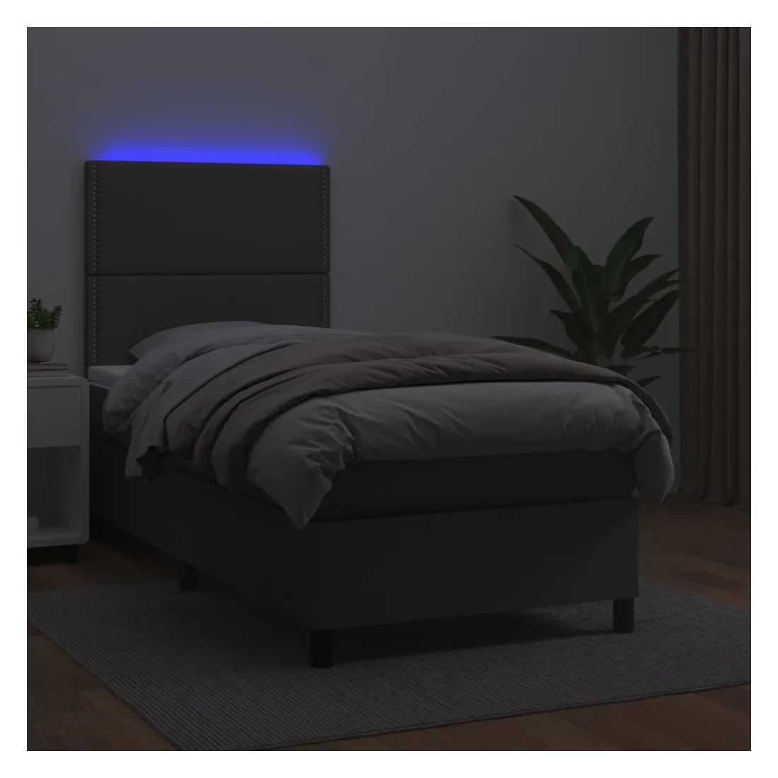 vidaXLUtilisez ce sommier tapissier avec matelas et LED pour profiter d'un sommeil réparateur ! C'est le point central de votre chambre à coucher. Similicuir durable : le similicuir de qualité supérieure est un matériau très durable. Il est résistant aux taches, ce qui le rend facile à nettoyer avec un chiffon humide. La surface lisse donne également un aspect luxueux et la beauté du cuir véritable.Tête de lit pratique : la tête de lit est réglable en hauteur selon vos préférences. La tête de lit vous offre un excellent soutien du dos lorsque vous êtes assis dans votre lit pour lire ou regarder la télévision.Bande LED colorée : apportez de l'éclairage dans l'obscurité avec des lumières LED colorées !Matelas à ressorts ensachés : le ressort ensaché individuel intégré est connu pour sa très haute qualité tout en assurant un haut niveau de durabilité et d'adaptabilité. Il peut absorber efficacement le bruit et les chocs causés par les sauts et les rotations.Protège-matelas doux pour la peau : le protège-matelas est recouvert d'un tissu résistant et doux pour la peau, ce qui le rend souple et confortable. Remarque :Pour des raisons d'hygiène, le matelas ne peut pas être retourné si l'emballage est retiré ou ouvert.Seule la partie avec un symbole de ciseaux peut être coupée et seule la partie avec l'USB continuera à fonctionner comme avant.Chaque produit est livré avec un manuel de montage dans la boîte pour un montage facile.Ce produit est doté d'un connecteur USB, mais la source d'alimentation certifiée de USB 5V n'est pas incluse.