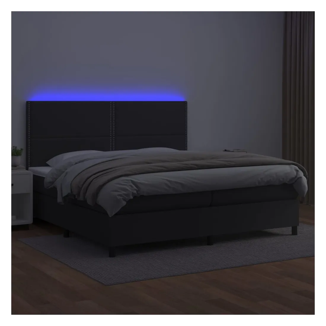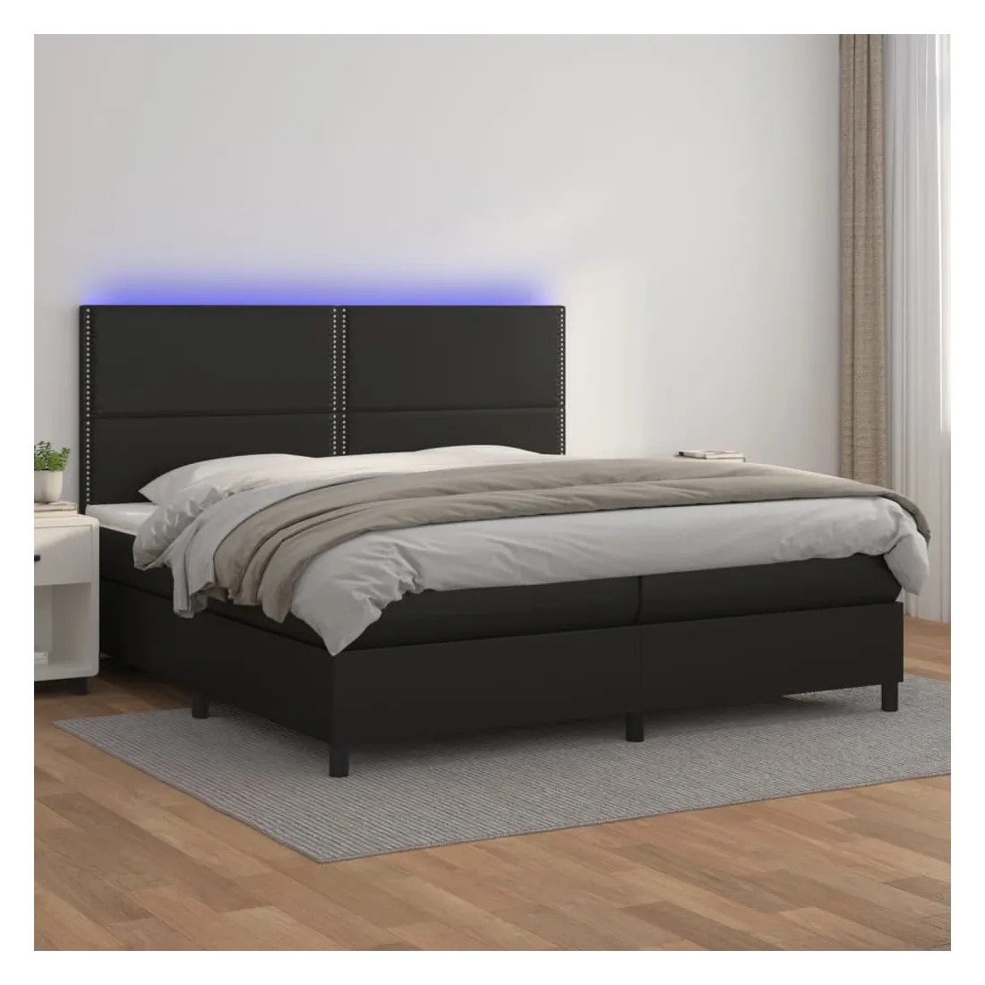 Utilisez ce sommier tapissier avec matelas et LED pour profiter d'un sommeil réparateur ! C'est le point central de votre chambre à coucher. Similicuir durable : le similicuir de qualité supérieure est un matériau très durable. Il est résistant aux taches, ce qui le rend facile à nettoyer avec un chiffon humide. La surface lisse donne également un aspect luxueux et la beauté du cuir véritable.Tête de lit pratique : la tête de lit est réglable en hauteur selon vos préférences. La tête de lit vous offre un excellent soutien du dos lorsque vous êtes assis dans votre lit pour lire ou regarder la télévision.Bande LED colorée : apportez de l'éclairage dans l'obscurité avec des lumières LED colorées !Matelas à ressorts ensachés : le ressort ensaché individuel intégré est connu pour sa très haute qualité tout en assurant un haut niveau de durabilité et d'adaptabilité. Il peut absorber efficacement le bruit et les chocs causés par les sauts et les rotations.Protège-matelas doux pour la peau : le protège-matelas est recouvert d'un tissu résistant et doux pour la peau, ce qui le rend souple et confortable. Remarque :Pour des raisons d'hygiène, le matelas ne peut pas être retourné si l'emballage est retiré ou ouvert.Seule la partie avec un symbole de ciseaux peut être coupée et seule la partie avec l'USB continuera à fonctionner comme avant.Chaque produit est livré avec un manuel de montage dans la boîte pour un montage facile.Ce produit est doté d'un connecteur USB, mais la source d'alimentation certifiée de USB 5V n'est pas incluse.