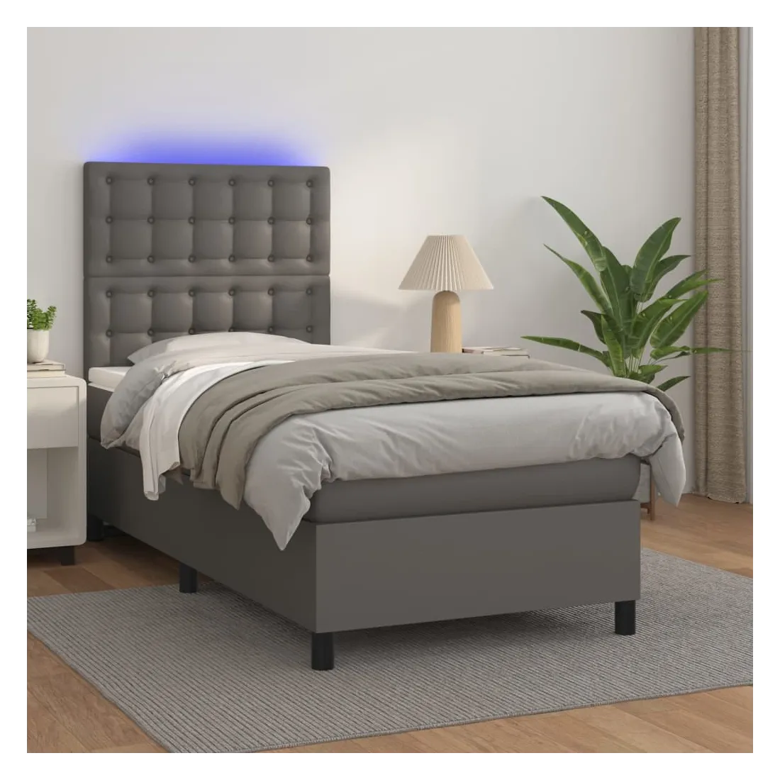 Sommier à lattes de lit avec matelas et LED Gris 100x200 cm