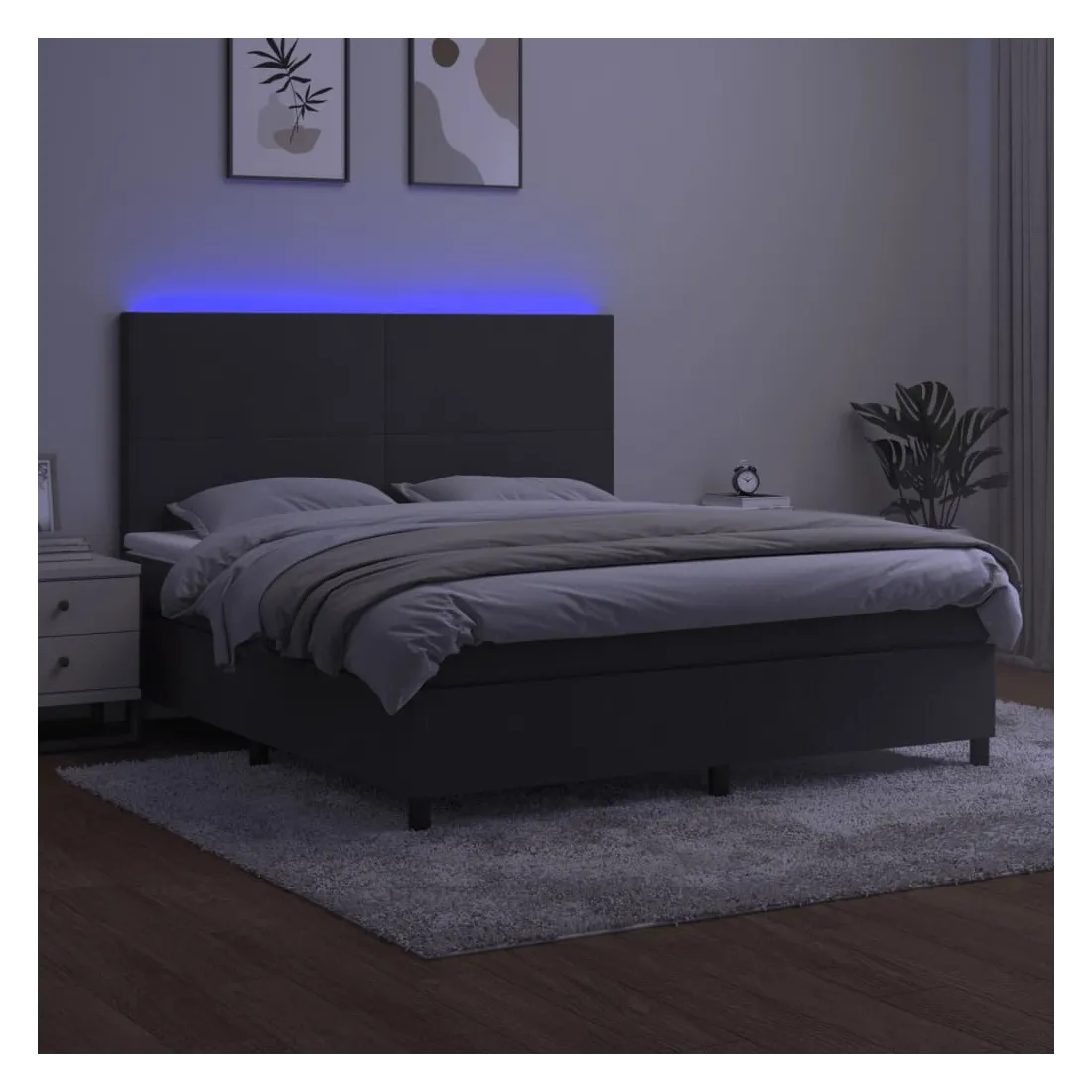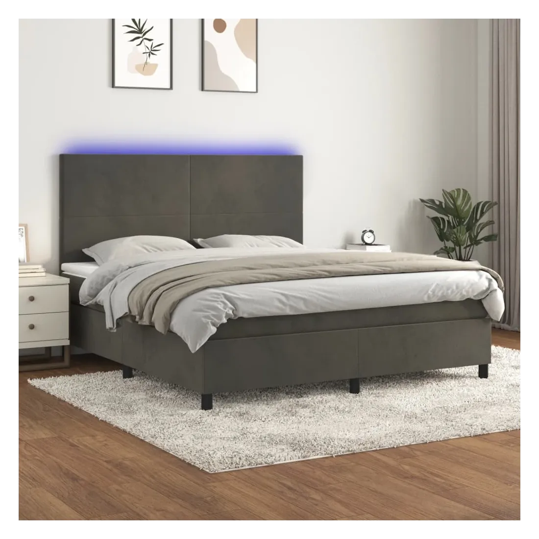 Utilisez ce sommier tapissier avec matelas et LED pour profiter d'un sommeil réparateur ! C'est le point central de votre chambre à coucher. Velours doux : le velours est un tissu doux et luxueux qui se reconnaît à son tas dense de fibres uniformément coupées qui ont une touche lisse. Le tissu en velours présente un toucher doux distinctif, ce qui le rend confortable au toucher.Tête de lit pratique : la tête de lit est réglable en hauteur selon vos préférences. La tête de lit vous offre un excellent soutien du dos lorsque vous êtes assis dans votre lit pour lire ou regarder la télévision.Bande LED colorée : apportez de l'éclairage dans l'obscurité avec des lumières LED colorées !Matelas à ressorts ensachés : le ressort ensaché individuel intégré est connu pour sa très haute qualité tout en assurant un haut niveau de durabilité et d'adaptabilité. Il peut absorber efficacement le bruit et les chocs causés par les sauts et les rotations.Protège-matelas doux pour la peau : le protège-matelas est recouvert d'un tissu résistant et doux pour la peau, ce qui le rend souple et confortable. Remarque :Pour des raisons d'hygiène, le matelas ne peut pas être retourné si l'emballage est retiré ou ouvert.Seule la partie avec un symbole de ciseaux peut être coupée et seule la partie avec l'USB continuera à fonctionner comme avant.Chaque produit est livré avec un manuel de montage dans la boîte pour un montage facile.Ce produit est doté d'un connecteur USB, mais la source d'alimentation certifiée de USB 5V n'est pas incluse.