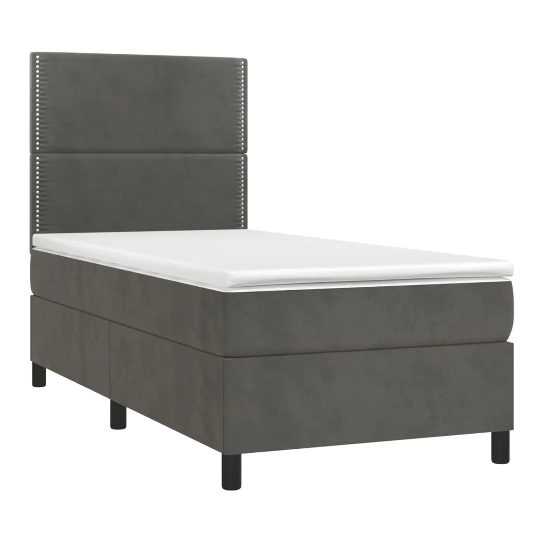 Sommier à lattes de lit avec matelas et LED Gris foncé 90x190cm