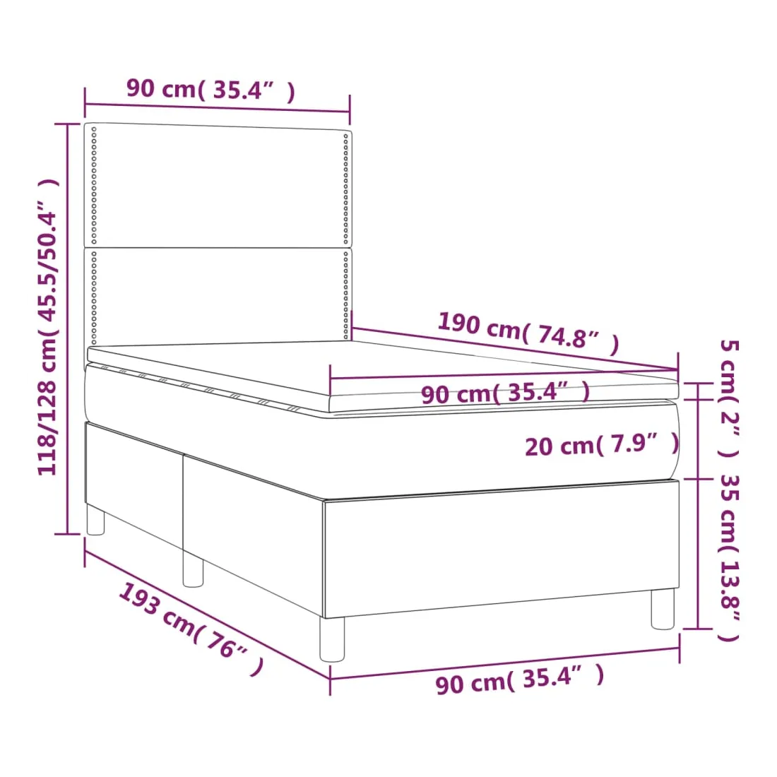 Sommier à lattes de lit avec matelas LED Noir 90x190 cm Velours