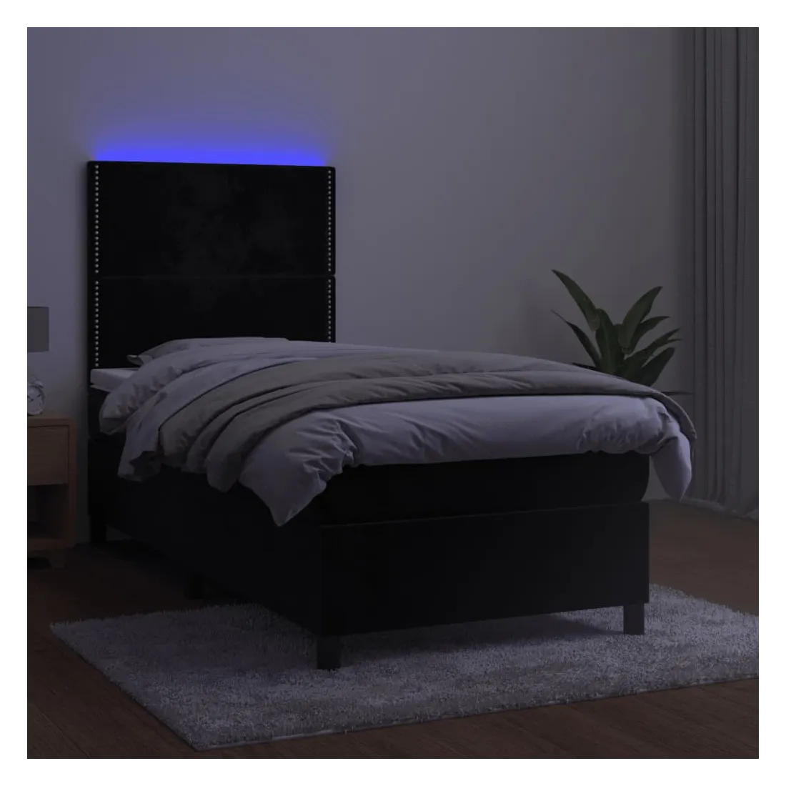 Utilisez ce sommier tapissier avec matelas et LED pour profiter d'un sommeil réparateur ! C'est le point central de votre chambre à coucher. Velours doux : le velours est un tissu doux et luxueux qui se reconnaît à son tas dense de fibres uniformément coupées qui ont une touche lisse. Le tissu en velours présente un toucher doux distinctif, ce qui le rend confortable au toucher.Tête de lit pratique : la tête de lit est réglable en hauteur selon vos préférences. La tête de lit vous offre un excellent soutien du dos lorsque vous êtes assis dans votre lit pour lire ou regarder la télévision.Bande LED colorée : apportez de l'éclairage dans l'obscurité avec des lumières LED colorées !Matelas à ressorts ensachés : le ressort ensaché individuel intégré est connu pour sa très haute qualité tout en assurant un haut niveau de durabilité et d'adaptabilité. Il peut absorber efficacement le bruit et les chocs causés par les sauts et les rotations.Protège-matelas doux pour la peau : le protège-matelas est recouvert d'un tissu résistant et doux pour la peau, ce qui le rend souple et confortable. Remarque :Pour des raisons d'hygiène, le matelas ne peut pas être retourné si l'emballage est retiré ou ouvert.Seule la partie avec un symbole de ciseaux peut être coupée et seule la partie avec l'USB continuera à fonctionner comme avant.Chaque produit est livré avec un manuel de montage dans la boîte pour un montage facile.Ce produit est doté d'un connecteur USB, mais la source d'alimentation certifiée de USB 5V n'est pas incluse.