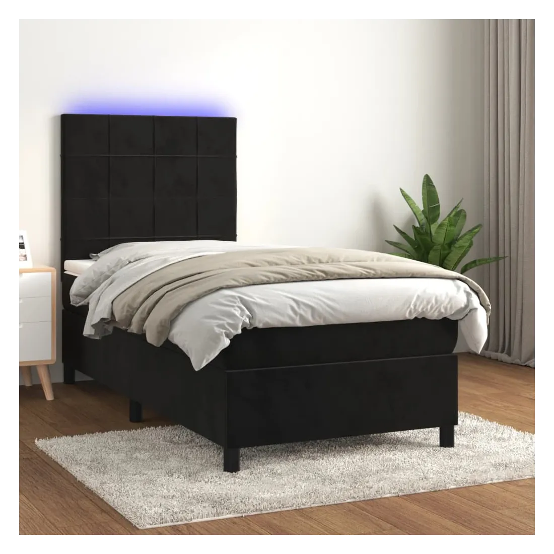 Utilisez ce sommier tapissier avec matelas et LED pour profiter d'un sommeil réparateur ! C'est le point central de votre chambre à coucher. Velours doux : le velours est un tissu doux et luxueux qui se reconnaît à son tas dense de fibres uniformément coupées qui ont une touche lisse. Le tissu en velours présente un toucher doux distinctif, ce qui le rend confortable au toucher.Tête de lit pratique : la tête de lit est réglable en hauteur selon vos préférences. La tête de lit vous offre un excellent soutien du dos lorsque vous êtes assis dans votre lit pour lire ou regarder la télévision.Bande LED colorée : apportez de l'éclairage dans l'obscurité avec des lumières LED colorées !Matelas à ressorts ensachés : le ressort ensaché individuel intégré est connu pour sa très haute qualité tout en assurant un haut niveau de durabilité et d'adaptabilité. Il peut absorber efficacement le bruit et les chocs causés par les sauts et les rotations.Protège-matelas doux pour la peau : le protège-matelas est recouvert d'un tissu résistant et doux pour la peau, ce qui le rend souple et confortable. Remarque :Pour des raisons d'hygiène, le matelas ne peut pas être retourné si l'emballage est retiré ou ouvert.Seule la partie avec un symbole de ciseaux peut être coupée et seule la partie avec l'USB continuera à fonctionner comme avant.Chaque produit est livré avec un manuel de montage dans la boîte pour un montage facile.Ce produit est doté d'un connecteur USB, mais la source d'alimentation certifiée de USB 5V n'est pas incluse.