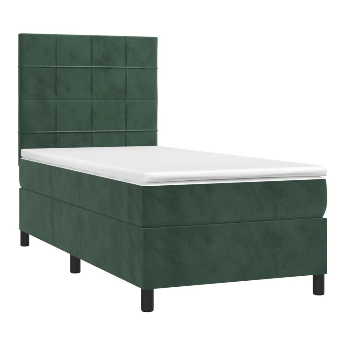 Sommier à lattes de lit et matelas et LED Vert foncé 90x190 cm