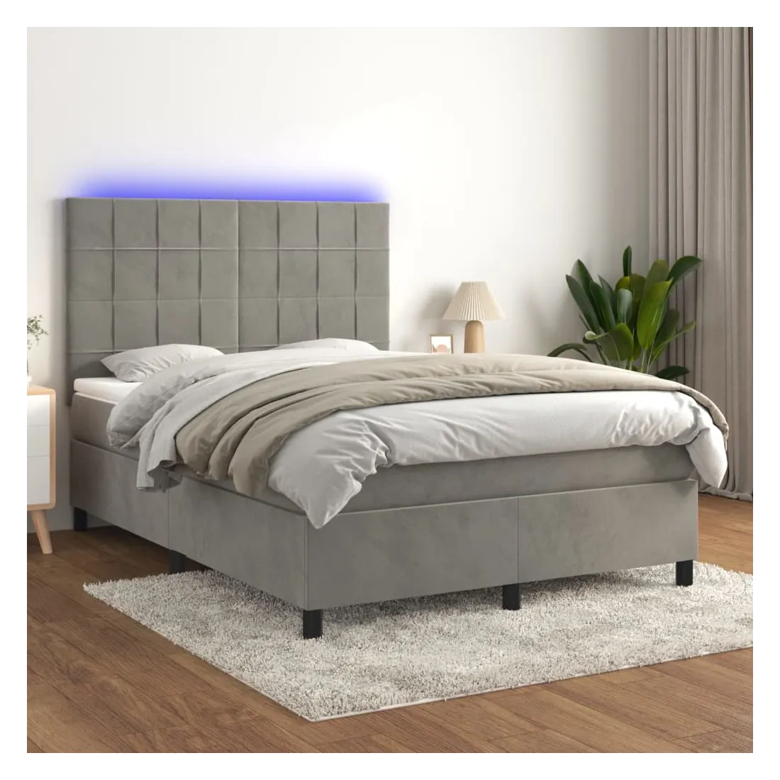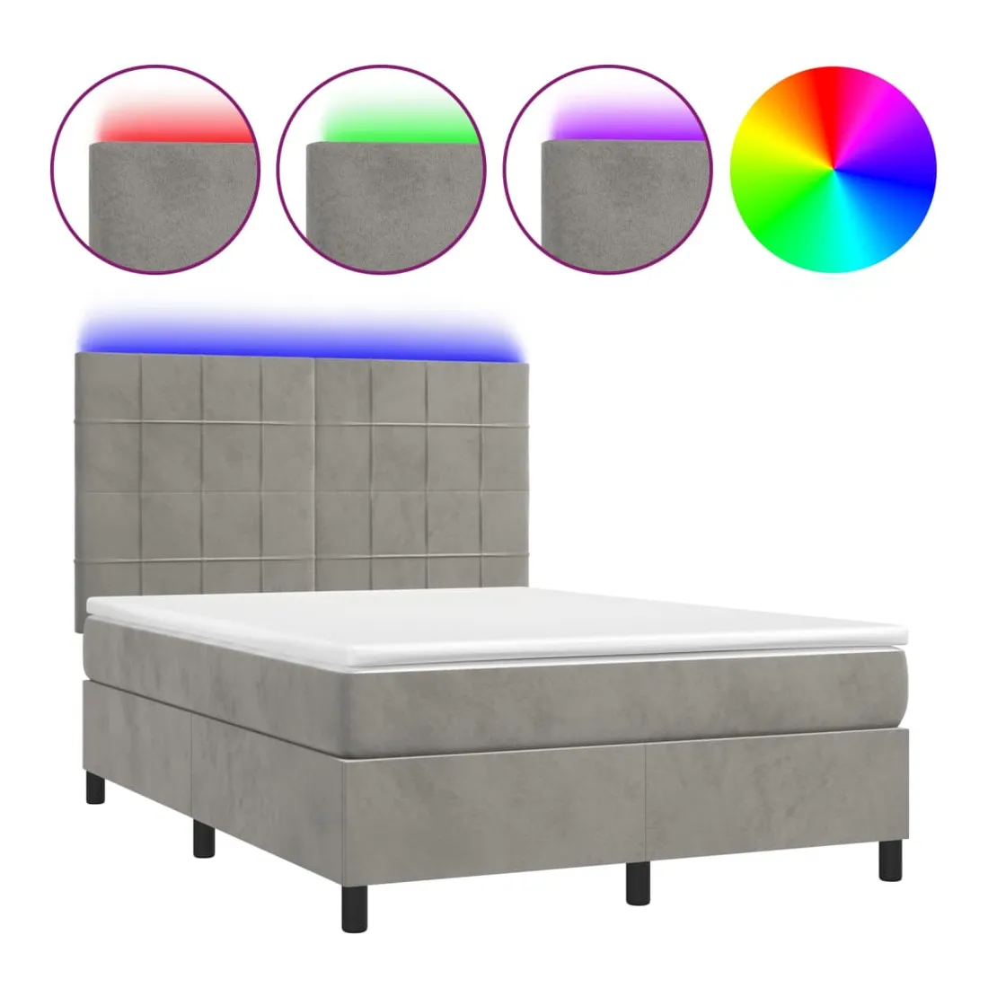 Sommier à lattes de lit matelas et LED Gris clair 140x190 cm