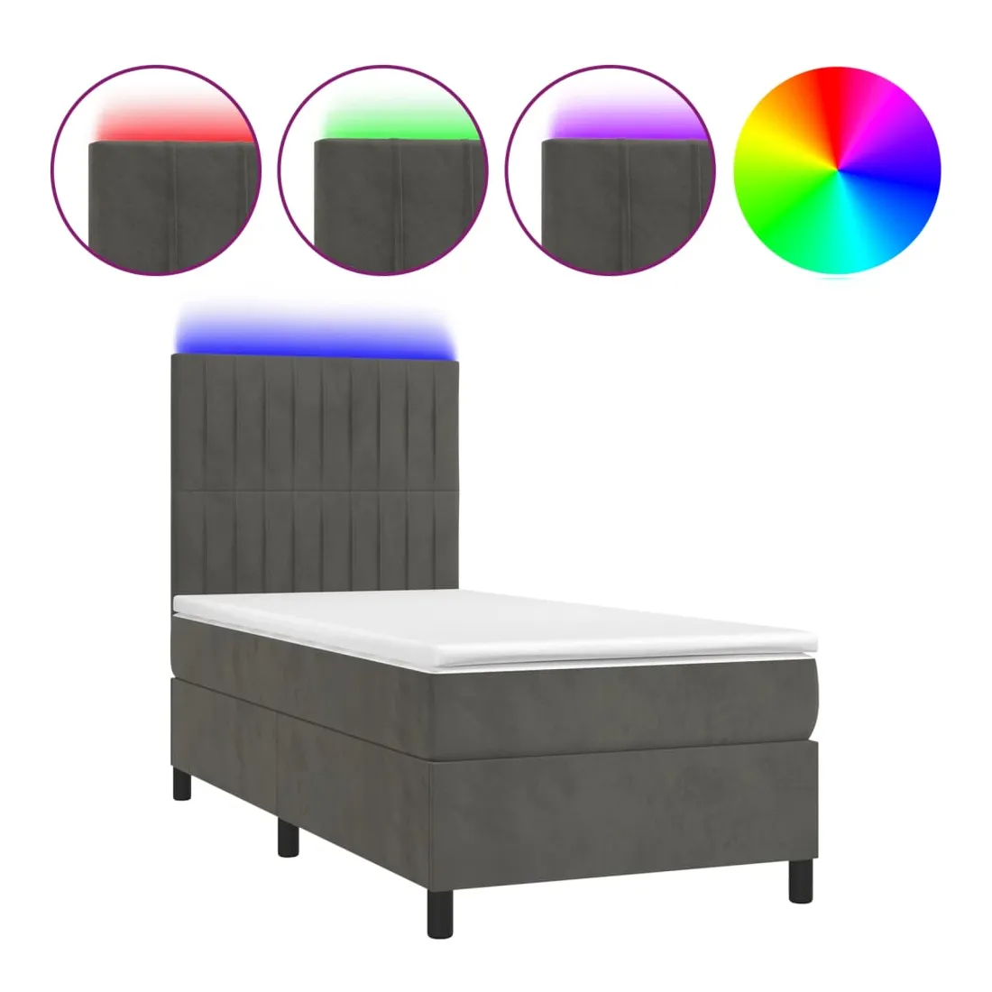Sommier à lattes de lit avec matelas LED Gris foncé 100x200 cm