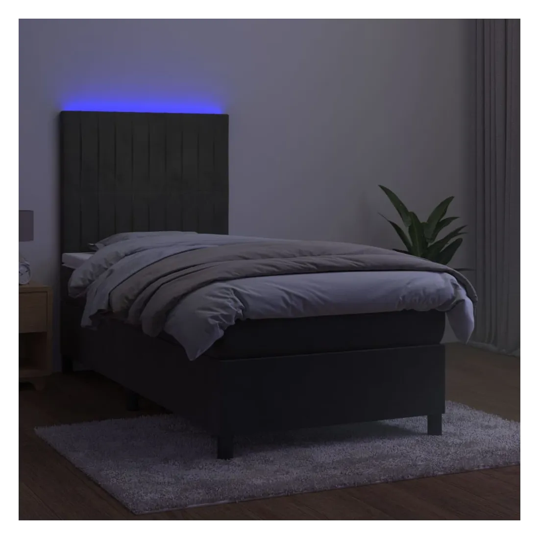 Utilisez ce sommier tapissier avec matelas et LED pour profiter d'un sommeil réparateur ! C'est le point central de votre chambre à coucher. Velours doux : le velours est un tissu doux et luxueux qui se reconnaît à son tas dense de fibres uniformément coupées qui ont une touche lisse. Le tissu en velours présente un toucher doux distinctif, ce qui le rend confortable au toucher.Tête de lit pratique : la tête de lit est réglable en hauteur selon vos préférences. La tête de lit vous offre un excellent soutien du dos lorsque vous êtes assis dans votre lit pour lire ou regarder la télévision.Bande LED colorée : apportez de l'éclairage dans l'obscurité avec des lumières LED colorées !Matelas à ressorts ensachés : le ressort ensaché individuel intégré est connu pour sa très haute qualité tout en assurant un haut niveau de durabilité et d'adaptabilité. Il peut absorber efficacement le bruit et les chocs causés par les sauts et les rotations.Protège-matelas doux pour la peau : le protège-matelas est recouvert d'un tissu résistant et doux pour la peau, ce qui le rend souple et confortable. Remarque :Pour des raisons d'hygiène, le matelas ne peut pas être retourné si l'emballage est retiré ou ouvert.Seule la partie avec un symbole de ciseaux peut être coupée et seule la partie avec l'USB continuera à fonctionner comme avant.Chaque produit est livré avec un manuel de montage dans la boîte pour un montage facile.Ce produit est doté d'un connecteur USB, mais la source d'alimentation certifiée de USB 5V n'est pas incluse.