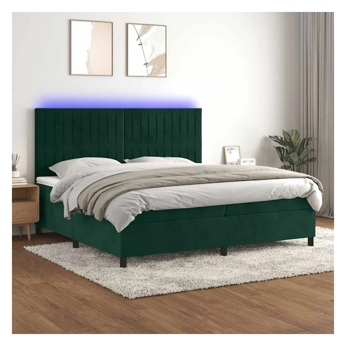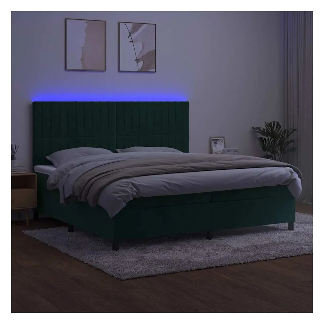 Utilisez ce sommier tapissier avec matelas et LED pour profiter d'un sommeil réparateur ! C'est le point central de votre chambre à coucher. Velours doux : le velours est un tissu doux et luxueux qui se reconnaît à son tas dense de fibres uniformément coupées qui ont une touche lisse. Le tissu en velours présente un toucher doux distinctif, ce qui le rend confortable au toucher.Tête de lit pratique : la tête de lit est réglable en hauteur selon vos préférences. La tête de lit vous offre un excellent soutien du dos lorsque vous êtes assis dans votre lit pour lire ou regarder la télévision.Bande LED colorée : apportez de l'éclairage dans l'obscurité avec des lumières LED colorées !Matelas à ressorts ensachés : le ressort ensaché individuel intégré est connu pour sa très haute qualité tout en assurant un haut niveau de durabilité et d'adaptabilité. Il peut absorber efficacement le bruit et les chocs causés par les sauts et les rotations.Protège-matelas doux pour la peau : le protège-matelas est recouvert d'un tissu résistant et doux pour la peau, ce qui le rend souple et confortable. Remarque :Pour des raisons d'hygiène, le matelas ne peut pas être retourné si l'emballage est retiré ou ouvert.Seule la partie avec un symbole de ciseaux peut être coupée et seule la partie avec l'USB continuera à fonctionner comme avant.Chaque produit est livré avec un manuel de montage dans la boîte pour un montage facile.Ce produit est doté d'un connecteur USB, mais la source d'alimentation certifiée de USB 5V n'est pas incluse.