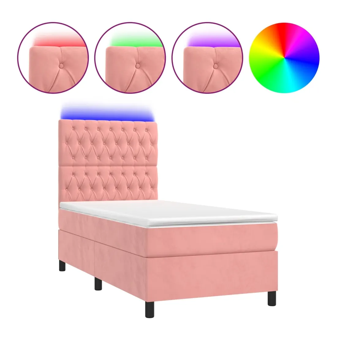 Sommier à lattes de lit matelas et LED Rose 100x200 cm Velours