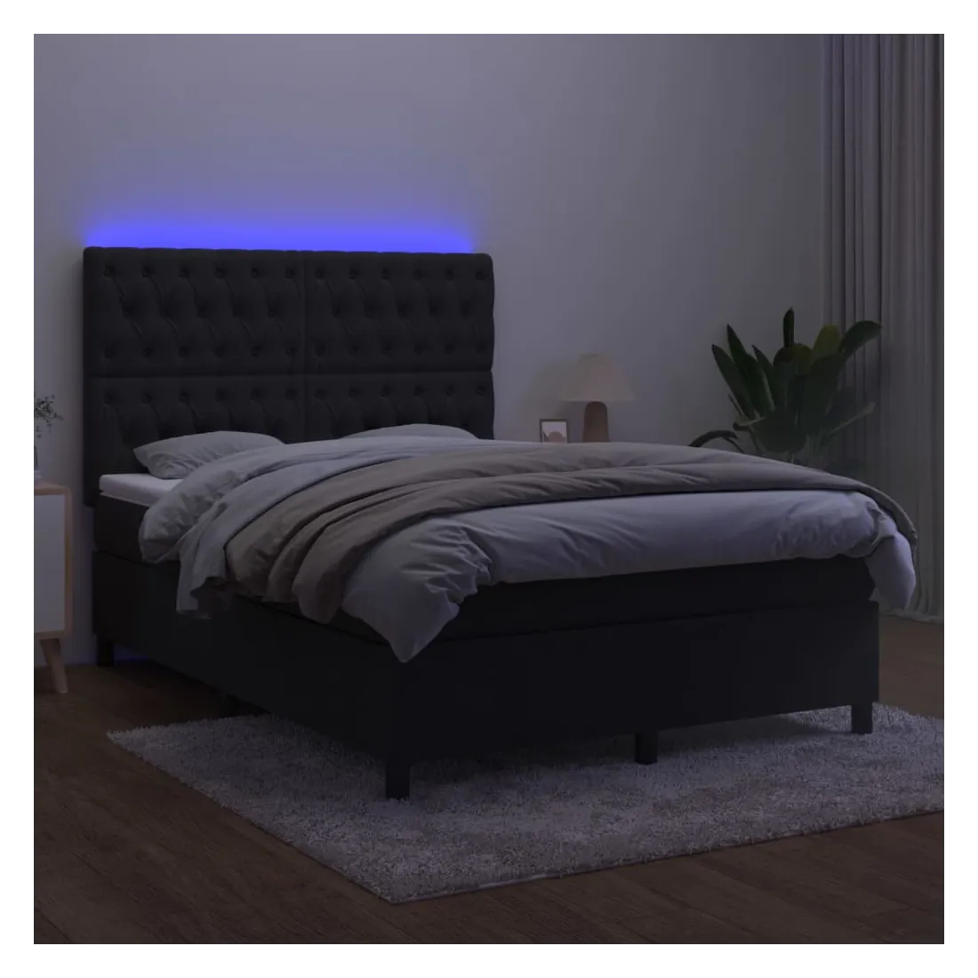 Utilisez ce sommier tapissier avec matelas et LED pour profiter d'un sommeil réparateur ! C'est le point central de votre chambre à coucher. Velours doux : le velours est un tissu doux et luxueux qui se reconnaît à son tas dense de fibres uniformément coupées qui ont une touche lisse. Le tissu en velours présente un toucher doux distinctif, ce qui le rend confortable au toucher.Tête de lit pratique : la tête de lit est réglable en hauteur selon vos préférences. La tête de lit vous offre un excellent soutien du dos lorsque vous êtes assis dans votre lit pour lire ou regarder la télévision.Bande LED colorée : apportez de l'éclairage dans l'obscurité avec des lumières LED colorées !Matelas à ressorts ensachés : le ressort ensaché individuel intégré est connu pour sa très haute qualité tout en assurant un haut niveau de durabilité et d'adaptabilité. Il peut absorber efficacement le bruit et les chocs causés par les sauts et les rotations.Protège-matelas doux pour la peau : le protège-matelas est recouvert d'un tissu résistant et doux pour la peau, ce qui le rend souple et confortable. Remarque :Pour des raisons d'hygiène, le matelas ne peut pas être retourné si l'emballage est retiré ou ouvert.Seule la partie avec un symbole de ciseaux peut être coupée et seule la partie avec l'USB continuera à fonctionner comme avant.Chaque produit est livré avec un manuel de montage dans la boîte pour un montage facile.Ce produit est doté d'un connecteur USB, mais la source d'alimentation certifiée de USB 5V n'est pas incluse.