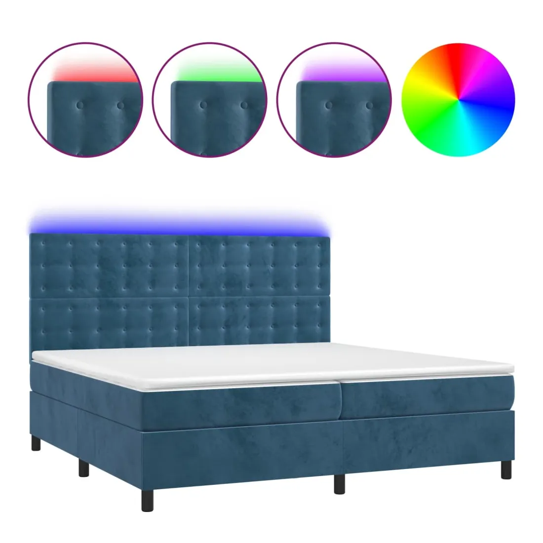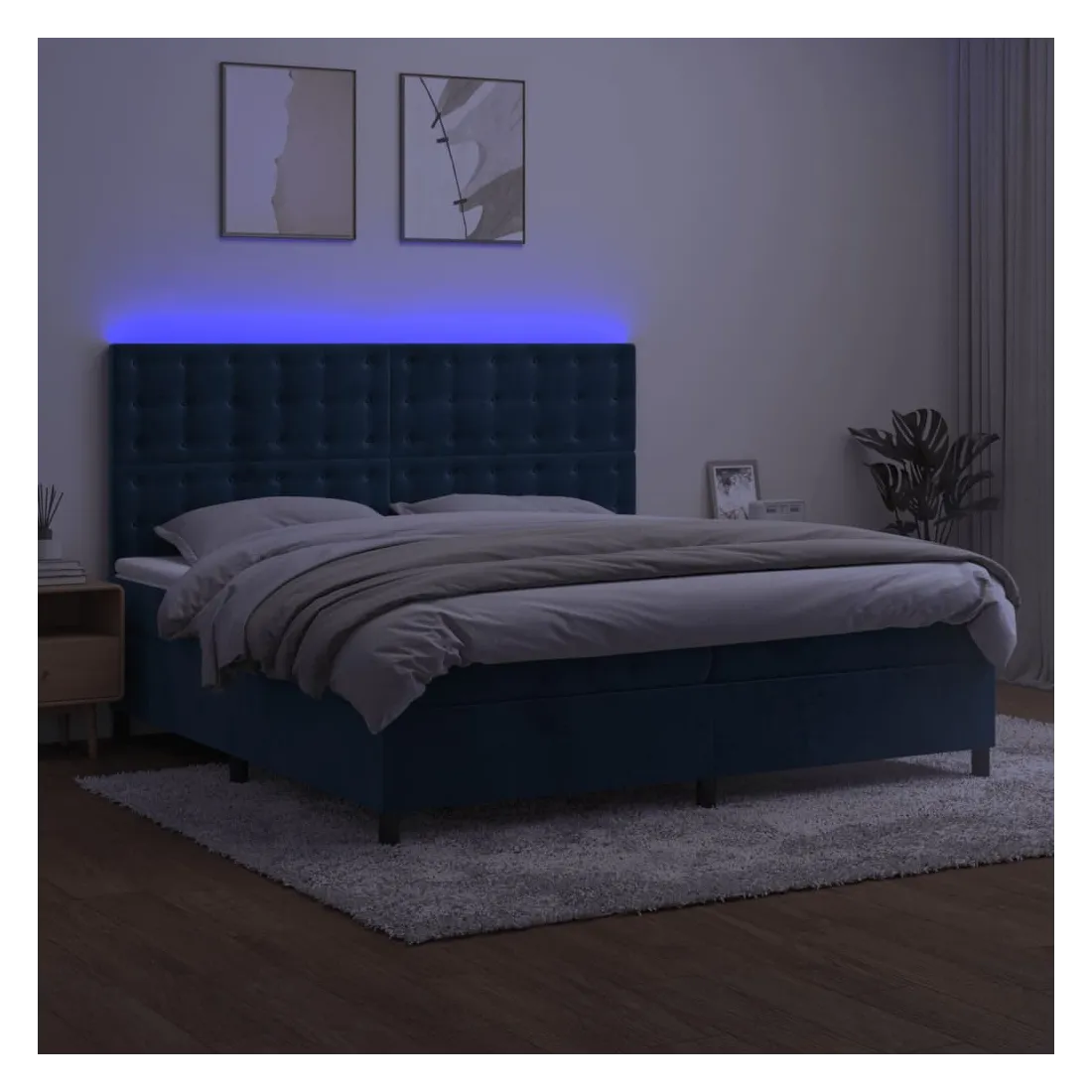 Utilisez ce sommier tapissier avec matelas et LED pour profiter d'un sommeil réparateur ! C'est le point central de votre chambre à coucher. Velours doux : le velours est un tissu doux et luxueux qui se reconnaît à son tas dense de fibres uniformément coupées qui ont une touche lisse. Le tissu en velours présente un toucher doux distinctif, ce qui le rend confortable au toucher.Tête de lit pratique : la tête de lit est réglable en hauteur selon vos préférences. La tête de lit vous offre un excellent soutien du dos lorsque vous êtes assis dans votre lit pour lire ou regarder la télévision.Bande LED colorée : apportez de l'éclairage dans l'obscurité avec des lumières LED colorées !Matelas à ressorts ensachés : le ressort ensaché individuel intégré est connu pour sa très haute qualité tout en assurant un haut niveau de durabilité et d'adaptabilité. Il peut absorber efficacement le bruit et les chocs causés par les sauts et les rotations.Protège-matelas doux pour la peau : le protège-matelas est recouvert d'un tissu résistant et doux pour la peau, ce qui le rend souple et confortable. Remarque :Pour des raisons d'hygiène, le matelas ne peut pas être retourné si l'emballage est retiré ou ouvert.Seule la partie avec un symbole de ciseaux peut être coupée et seule la partie avec l'USB continuera à fonctionner comme avant.Chaque produit est livré avec un manuel de montage dans la boîte pour un montage facile.Ce produit est doté d'un connecteur USB, mais la source d'alimentation certifiée de USB 5V n'est pas incluse.