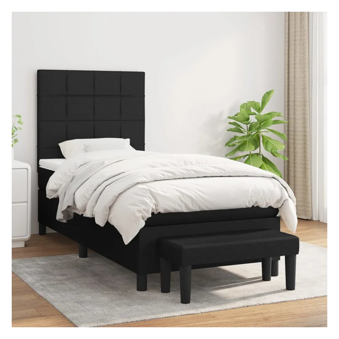 Sommier à lattes de lit avec matelas Noir 90x190 cm Tissu