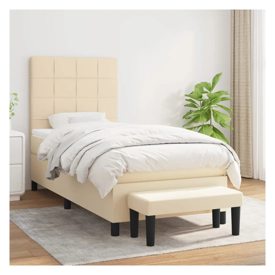 Sommier à lattes de lit avec matelas Crème 90x200 cm Tissu