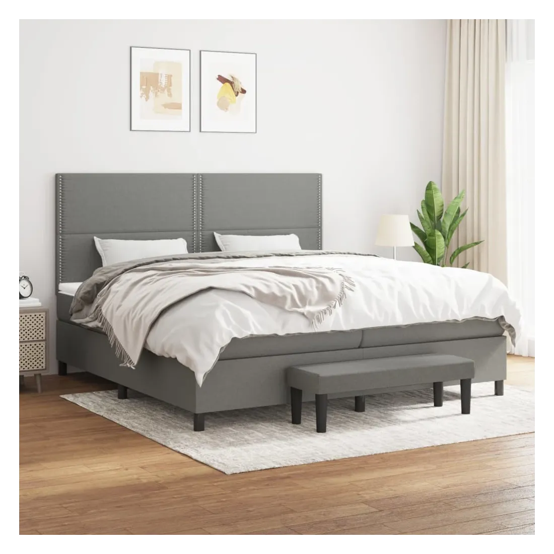 Utilisez ce lit à sommier pour profiter d'une nuit de sommeil réparatrice ! Il vous offre une relaxation maximale et un sommeil agréable. Tissu durable : le tissu présente un aspect simple et épuré, et il est respirant et durable.Tête de lit pratique : la tête de lit est réglable en hauteur selon vos préférences. La tête de lit vous offre un excellent soutien du dos lorsque vous êtes assis dans votre lit pour lire ou regarder la télévision.Matelas à ressorts ensachés : le ressort ensaché individuel intégré est connu pour sa très haute qualité tout en assurant un haut niveau de durabilité et d'adaptabilité. Il peut absorber efficacement le bruit et les chocs causés par les sauts et les rotations.Support moyen-dur : ce matelas de lit offre une stabilité accrue et juste le niveau de fermeté sans sacrifier le confort. Il est donc idéal pour les personnes qui dorment sur le dos ou sur le ventre.Protège-matelas doux pour la peau : le protège-matelas est recouvert d'un tissu résistant et doux pour la peau, ce qui le rend souple et confortable.Banc multifonctionnel : ce banc peut servir de siège supplémentaire dans votre maison. Il peut également être utilisé comme banc de bout de lit. Remarque :Pour des raisons d'hygiène, le matelas ne peut pas être retourné si l'emballage est retiré ou ouvert.Chaque produit est livré avec un manuel de montage dans la boîte pour un montage facile.