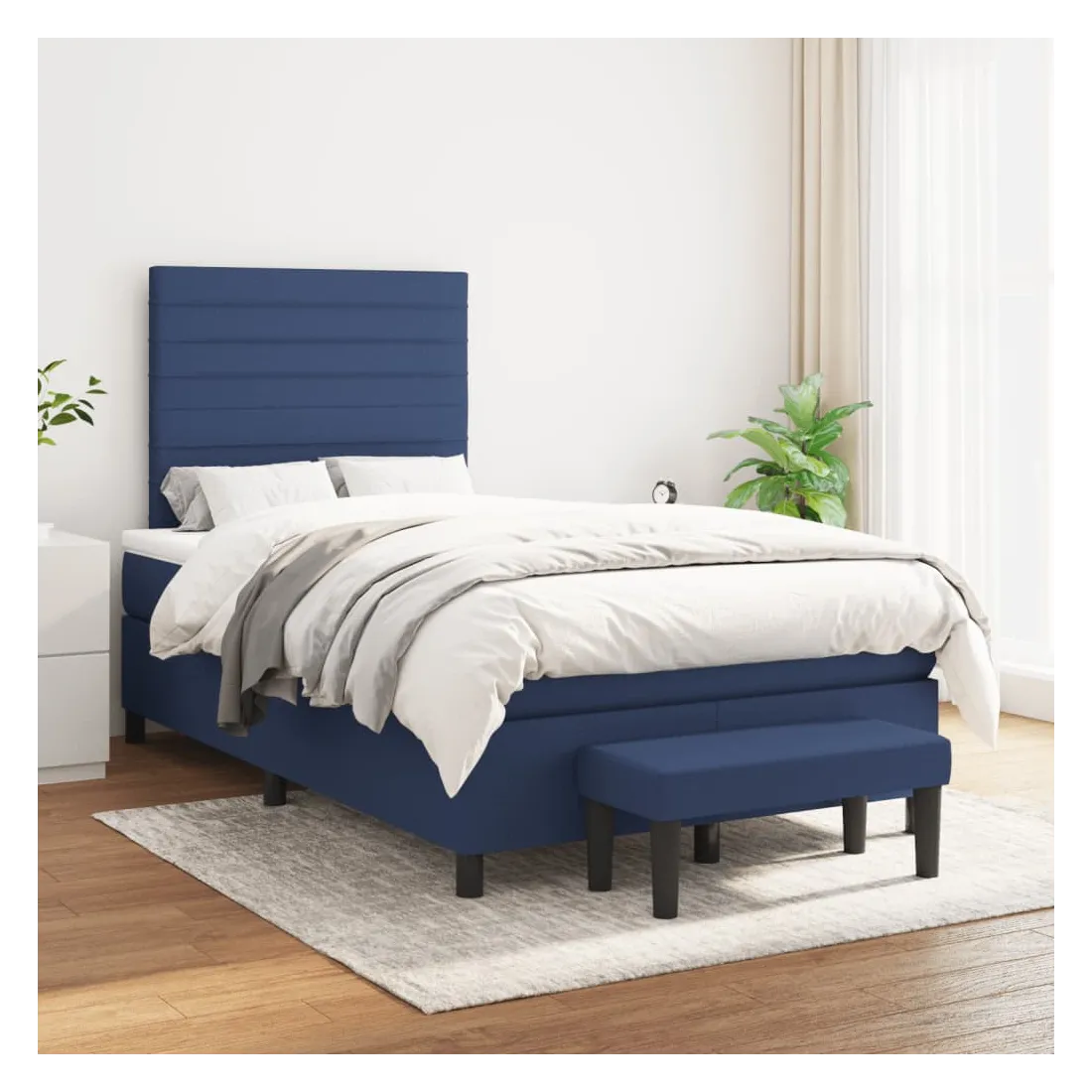 Sommier à lattes de lit avec matelas Bleu 120x200 cm Tissu