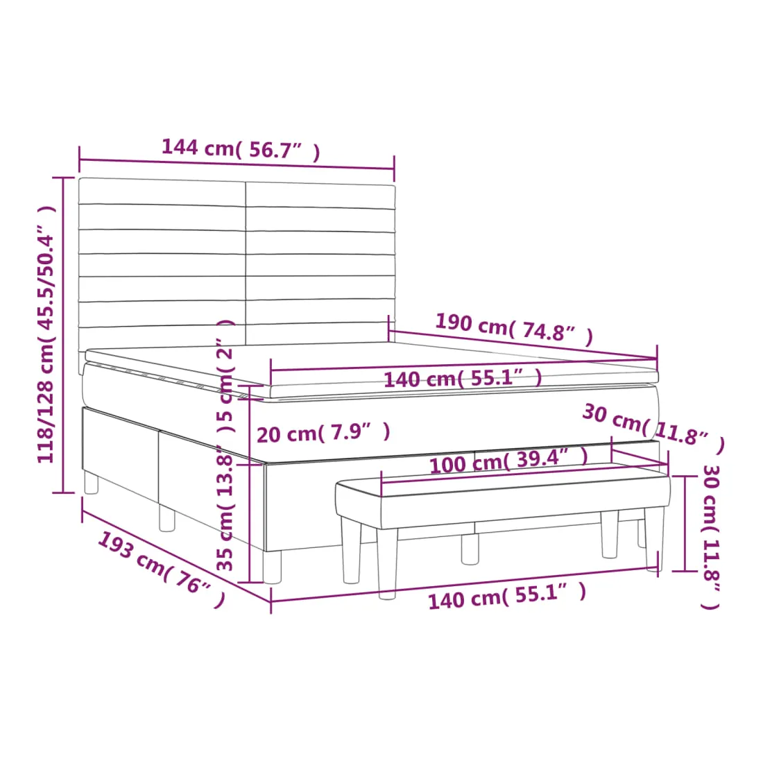 Utilisez ce lit à sommier pour profiter d'une nuit de sommeil réparatrice ! Il vous offre une relaxation maximale et un sommeil agréable. Tissu durable : le tissu présente un aspect simple et épuré, et il est respirant et durable.Tête de lit pratique : la tête de lit est réglable en hauteur selon vos préférences. La tête de lit vous offre un excellent soutien du dos lorsque vous êtes assis dans votre lit pour lire ou regarder la télévision.Matelas à ressorts ensachés : le ressort ensaché individuel intégré est connu pour sa très haute qualité tout en assurant un haut niveau de durabilité et d'adaptabilité. Il peut absorber efficacement le bruit et les chocs causés par les sauts et les rotations.Support moyen-dur : ce matelas de lit offre une stabilité accrue et juste le niveau de fermeté sans sacrifier le confort. Il est donc idéal pour les personnes qui dorment sur le dos ou sur le ventre.Protège-matelas doux pour la peau : le protège-matelas est recouvert d'un tissu résistant et doux pour la peau, ce qui le rend souple et confortable.Banc multifonctionnel : ce banc peut servir de siège supplémentaire dans votre maison. Il peut également être utilisé comme banc de bout de lit. Remarque :Pour des raisons d'hygiène, le matelas ne peut pas être retourné si l'emballage est retiré ou ouvert.Chaque produit est livré avec un manuel de montage dans la boîte pour un montage facile.