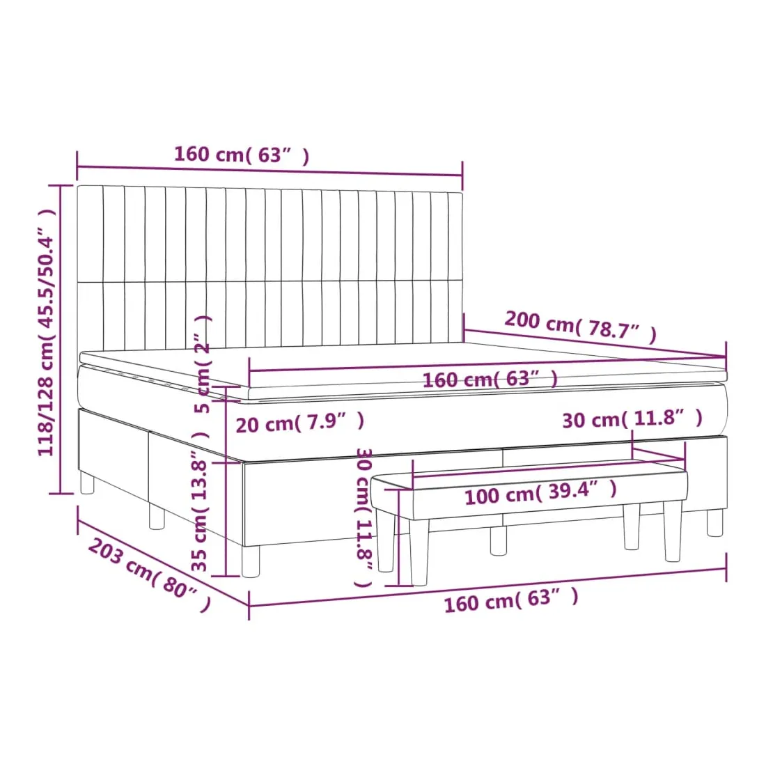 Utilisez ce lit à sommier pour profiter d'une nuit de sommeil réparatrice ! Il vous offre une relaxation maximale et un sommeil agréable. Tissu durable : le tissu présente un aspect simple et épuré, et il est respirant et durable.Tête de lit pratique : la tête de lit est réglable en hauteur selon vos préférences. La tête de lit vous offre un excellent soutien du dos lorsque vous êtes assis dans votre lit pour lire ou regarder la télévision.Matelas à ressorts ensachés : le ressort ensaché individuel intégré est connu pour sa très haute qualité tout en assurant un haut niveau de durabilité et d'adaptabilité. Il peut absorber efficacement le bruit et les chocs causés par les sauts et les rotations.Support moyen-dur : ce matelas de lit offre une stabilité accrue et juste le niveau de fermeté sans sacrifier le confort. Il est donc idéal pour les personnes qui dorment sur le dos ou sur le ventre.Protège-matelas doux pour la peau : le protège-matelas est recouvert d'un tissu résistant et doux pour la peau, ce qui le rend souple et confortable.Banc multifonctionnel : ce banc peut servir de siège supplémentaire dans votre maison. Il peut également être utilisé comme banc de bout de lit. Remarque :Pour des raisons d'hygiène, le matelas ne peut pas être retourné si l'emballage est retiré ou ouvert.Chaque produit est livré avec un manuel de montage dans la boîte pour un montage facile.