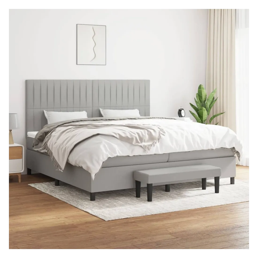 Utilisez ce lit à sommier pour profiter d'une nuit de sommeil réparatrice ! Il vous offre une relaxation maximale et un sommeil agréable. Tissu durable : le tissu présente un aspect simple et épuré, et il est respirant et durable.Tête de lit pratique : la tête de lit est réglable en hauteur selon vos préférences. La tête de lit vous offre un excellent soutien du dos lorsque vous êtes assis dans votre lit pour lire ou regarder la télévision.Matelas à ressorts ensachés : le ressort ensaché individuel intégré est connu pour sa très haute qualité tout en assurant un haut niveau de durabilité et d'adaptabilité. Il peut absorber efficacement le bruit et les chocs causés par les sauts et les rotations.Support moyen-dur : ce matelas de lit offre une stabilité accrue et juste le niveau de fermeté sans sacrifier le confort. Il est donc idéal pour les personnes qui dorment sur le dos ou sur le ventre.Protège-matelas doux pour la peau : le protège-matelas est recouvert d'un tissu résistant et doux pour la peau, ce qui le rend souple et confortable.Banc multifonctionnel : ce banc peut servir de siège supplémentaire dans votre maison. Il peut également être utilisé comme banc de bout de lit. Remarque :Pour des raisons d'hygiène, le matelas ne peut pas être retourné si l'emballage est retiré ou ouvert.Chaque produit est livré avec un manuel de montage dans la boîte pour un montage facile.