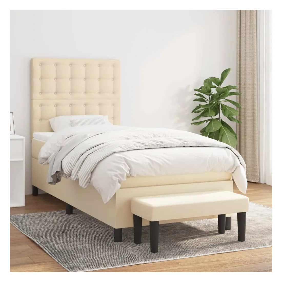 Utilisez ce lit à sommier pour profiter d'une nuit de sommeil réparatrice ! Il vous offre une relaxation maximale et un sommeil agréable. Tissu durable : le tissu présente un aspect simple et épuré, et il est respirant et durable.Tête de lit pratique : la tête de lit est réglable en hauteur selon vos préférences. La tête de lit vous offre un excellent soutien du dos lorsque vous êtes assis dans votre lit pour lire ou regarder la télévision.Matelas à ressorts ensachés : le ressort ensaché individuel intégré est connu pour sa très haute qualité tout en assurant un haut niveau de durabilité et d'adaptabilité. Il peut absorber efficacement le bruit et les chocs causés par les sauts et les rotations.Support moyen-dur : ce matelas de lit offre une stabilité accrue et juste le niveau de fermeté sans sacrifier le confort. Il est donc idéal pour les personnes qui dorment sur le dos ou sur le ventre.Protège-matelas doux pour la peau : le protège-matelas est recouvert d'un tissu résistant et doux pour la peau, ce qui le rend souple et confortable.Banc multifonctionnel : ce banc peut servir de siège supplémentaire dans votre maison. Il peut également être utilisé comme banc de bout de lit. Remarque :Pour des raisons d'hygiène, le matelas ne peut pas être retourné si l'emballage est retiré ou ouvert.Chaque produit est livré avec un manuel de montage dans la boîte pour un montage facile.