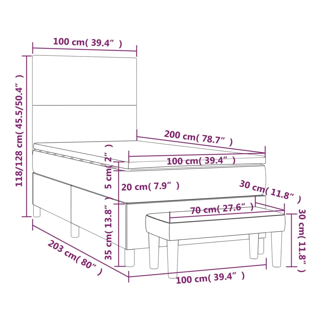 - Dimensions: 203 x 100 x 118/128 cm (L x l x H)