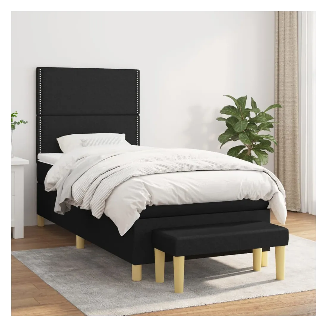 Utilisez ce lit à sommier pour profiter d'une nuit de sommeil réparatrice ! Il vous offre une relaxation maximale et un sommeil agréable. Tissu durable : le tissu présente un aspect simple et épuré, et il est respirant et durable.Tête de lit pratique : la tête de lit est réglable en hauteur selon vos préférences. La tête de lit vous offre un excellent soutien du dos lorsque vous êtes assis dans votre lit pour lire ou regarder la télévision.Matelas à ressorts ensachés : le ressort ensaché individuel intégré est connu pour sa très haute qualité tout en assurant un haut niveau de durabilité et d'adaptabilité. Il peut absorber efficacement le bruit et les chocs causés par les sauts et les rotations.Support moyen-dur : ce matelas de lit offre une stabilité accrue et juste le niveau de fermeté sans sacrifier le confort. Il est donc idéal pour les personnes qui dorment sur le dos ou sur le ventre.Protège-matelas doux pour la peau : le protège-matelas est recouvert d'un tissu résistant et doux pour la peau, ce qui le rend souple et confortable.Banc multifonctionnel : ce banc peut servir de siège supplémentaire dans votre maison. Il peut également être utilisé comme banc de bout de lit. Remarque :Pour des raisons d'hygiène, le matelas ne peut pas être retourné si l'emballage est retiré ou ouvert.Chaque produit est livré avec un manuel de montage dans la boîte pour un montage facile.