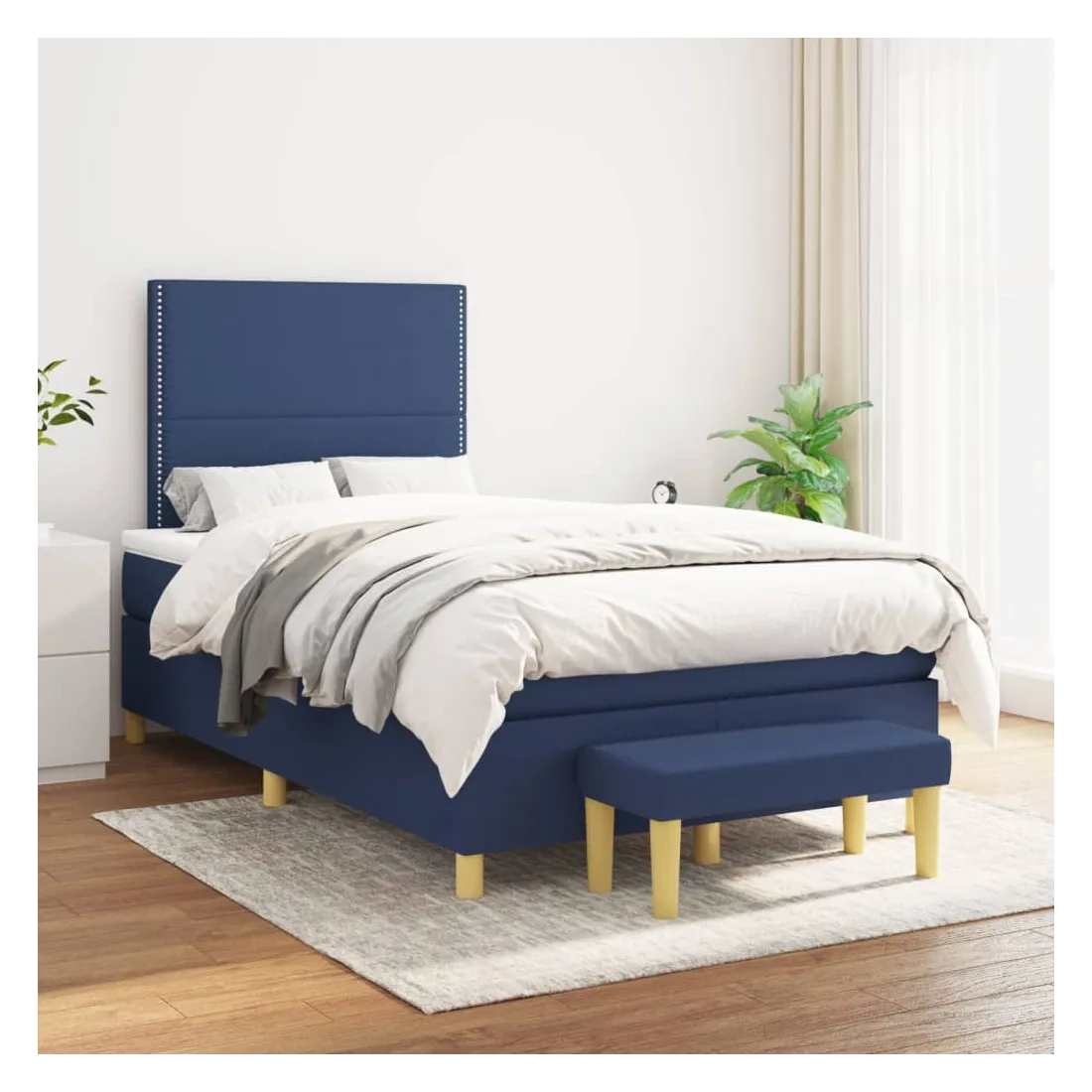 Utilisez ce lit à sommier pour profiter d'une nuit de sommeil réparatrice ! Il vous offre une relaxation maximale et un sommeil agréable. Tissu durable : le tissu présente un aspect simple et épuré, et il est respirant et durable.Tête de lit pratique : la tête de lit est réglable en hauteur selon vos préférences. La tête de lit vous offre un excellent soutien du dos lorsque vous êtes assis dans votre lit pour lire ou regarder la télévision.Matelas à ressorts ensachés : le ressort ensaché individuel intégré est connu pour sa très haute qualité tout en assurant un haut niveau de durabilité et d'adaptabilité. Il peut absorber efficacement le bruit et les chocs causés par les sauts et les rotations.Support moyen-dur : ce matelas de lit offre une stabilité accrue et juste le niveau de fermeté sans sacrifier le confort. Il est donc idéal pour les personnes qui dorment sur le dos ou sur le ventre.Protège-matelas doux pour la peau : le protège-matelas est recouvert d'un tissu résistant et doux pour la peau, ce qui le rend souple et confortable.Banc multifonctionnel : ce banc peut servir de siège supplémentaire dans votre maison. Il peut également être utilisé comme banc de bout de lit. Remarque :Pour des raisons d'hygiène, le matelas ne peut pas être retourné si l'emballage est retiré ou ouvert.Chaque produit est livré avec un manuel de montage dans la boîte pour un montage facile.