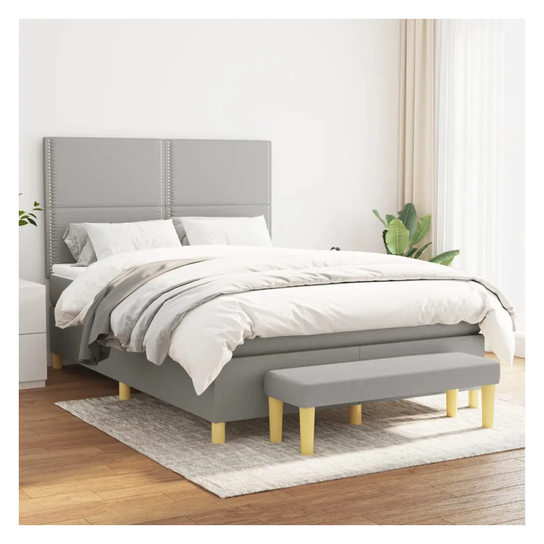 Utilisez ce lit à sommier pour profiter d'une nuit de sommeil réparatrice ! Il vous offre une relaxation maximale et un sommeil agréable. Tissu durable : le tissu présente un aspect simple et épuré, et il est respirant et durable.Tête de lit pratique : la tête de lit est réglable en hauteur selon vos préférences. La tête de lit vous offre un excellent soutien du dos lorsque vous êtes assis dans votre lit pour lire ou regarder la télévision.Matelas à ressorts ensachés : le ressort ensaché individuel intégré est connu pour sa très haute qualité tout en assurant un haut niveau de durabilité et d'adaptabilité. Il peut absorber efficacement le bruit et les chocs causés par les sauts et les rotations.Support moyen-dur : ce matelas de lit offre une stabilité accrue et juste le niveau de fermeté sans sacrifier le confort. Il est donc idéal pour les personnes qui dorment sur le dos ou sur le ventre.Protège-matelas doux pour la peau : le protège-matelas est recouvert d'un tissu résistant et doux pour la peau, ce qui le rend souple et confortable.Banc multifonctionnel : ce banc peut servir de siège supplémentaire dans votre maison. Il peut également être utilisé comme banc de bout de lit. Remarque :Pour des raisons d'hygiène, le matelas ne peut pas être retourné si l'emballage est retiré ou ouvert.Chaque produit est livré avec un manuel de montage dans la boîte pour un montage facile.