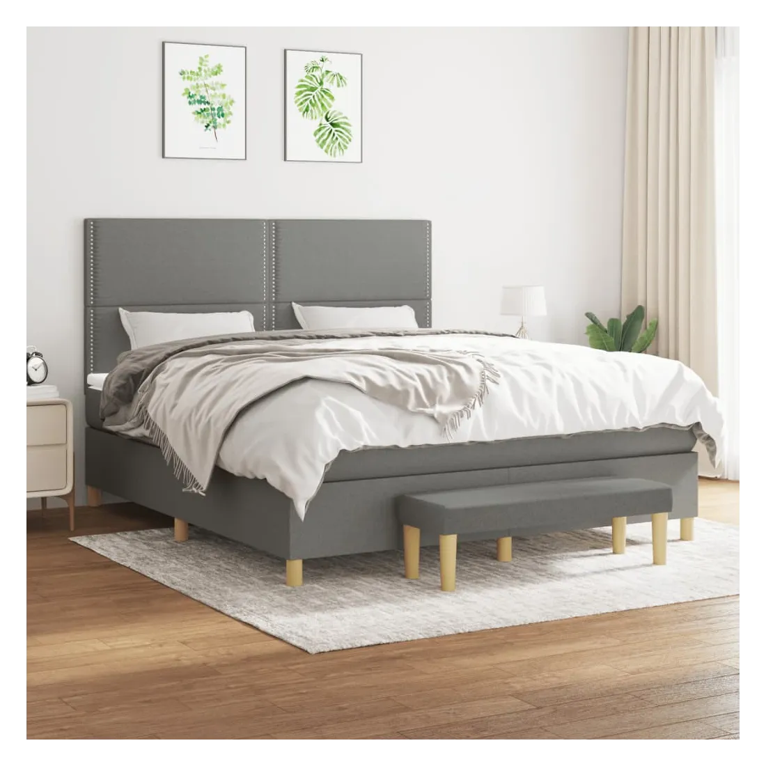 Utilisez ce lit à sommier pour profiter d'une nuit de sommeil réparatrice ! Il vous offre une relaxation maximale et un sommeil agréable. Tissu durable : le tissu présente un aspect simple et épuré, et il est respirant et durable.Tête de lit pratique : la tête de lit est réglable en hauteur selon vos préférences. La tête de lit vous offre un excellent soutien du dos lorsque vous êtes assis dans votre lit pour lire ou regarder la télévision.Matelas à ressorts ensachés : le ressort ensaché individuel intégré est connu pour sa très haute qualité tout en assurant un haut niveau de durabilité et d'adaptabilité. Il peut absorber efficacement le bruit et les chocs causés par les sauts et les rotations.Support moyen-dur : ce matelas de lit offre une stabilité accrue et juste le niveau de fermeté sans sacrifier le confort. Il est donc idéal pour les personnes qui dorment sur le dos ou sur le ventre.Protège-matelas doux pour la peau : le protège-matelas est recouvert d'un tissu résistant et doux pour la peau, ce qui le rend souple et confortable.Banc multifonctionnel : ce banc peut servir de siège supplémentaire dans votre maison. Il peut également être utilisé comme banc de bout de lit. Remarque :Pour des raisons d'hygiène, le matelas ne peut pas être retourné si l'emballage est retiré ou ouvert.Chaque produit est livré avec un manuel de montage dans la boîte pour un montage facile.