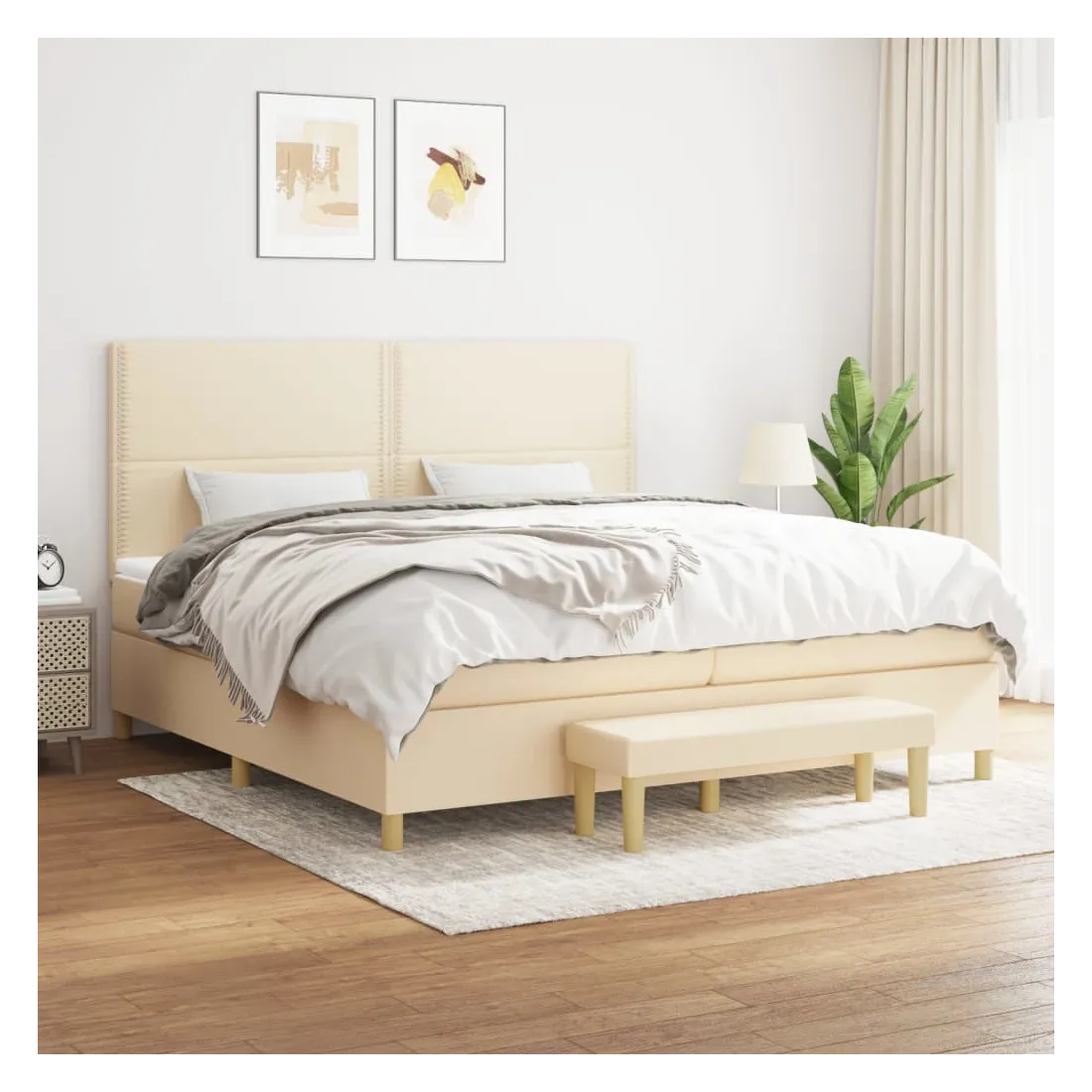Utilisez ce lit à sommier pour profiter d'une nuit de sommeil réparatrice ! Il vous offre une relaxation maximale et un sommeil agréable. Tissu durable : le tissu présente un aspect simple et épuré, et il est respirant et durable.Tête de lit pratique : la tête de lit est réglable en hauteur selon vos préférences. La tête de lit vous offre un excellent soutien du dos lorsque vous êtes assis dans votre lit pour lire ou regarder la télévision.Matelas à ressorts ensachés : le ressort ensaché individuel intégré est connu pour sa très haute qualité tout en assurant un haut niveau de durabilité et d'adaptabilité. Il peut absorber efficacement le bruit et les chocs causés par les sauts et les rotations.Support moyen-dur : ce matelas de lit offre une stabilité accrue et juste le niveau de fermeté sans sacrifier le confort. Il est donc idéal pour les personnes qui dorment sur le dos ou sur le ventre.Protège-matelas doux pour la peau : le protège-matelas est recouvert d'un tissu résistant et doux pour la peau, ce qui le rend souple et confortable.Banc multifonctionnel : ce banc peut servir de siège supplémentaire dans votre maison. Il peut également être utilisé comme banc de bout de lit. Remarque :Pour des raisons d'hygiène, le matelas ne peut pas être retourné si l'emballage est retiré ou ouvert.Chaque produit est livré avec un manuel de montage dans la boîte pour un montage facile.