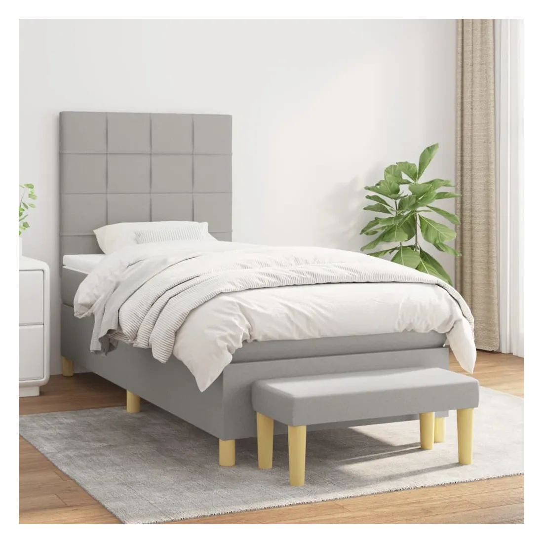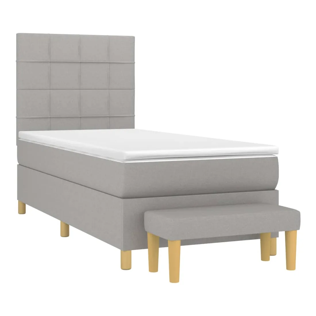 Utilisez ce lit à sommier pour profiter d'une nuit de sommeil réparatrice ! Il vous offre une relaxation maximale et un sommeil agréable. Tissu durable : le tissu présente un aspect simple et épuré, et il est respirant et durable.Tête de lit pratique : la tête de lit est réglable en hauteur selon vos préférences. La tête de lit vous offre un excellent soutien du dos lorsque vous êtes assis dans votre lit pour lire ou regarder la télévision.Matelas à ressorts ensachés : le ressort ensaché individuel intégré est connu pour sa très haute qualité tout en assurant un haut niveau de durabilité et d'adaptabilité. Il peut absorber efficacement le bruit et les chocs causés par les sauts et les rotations.Support moyen-dur : ce matelas de lit offre une stabilité accrue et juste le niveau de fermeté sans sacrifier le confort. Il est donc idéal pour les personnes qui dorment sur le dos ou sur le ventre.Protège-matelas doux pour la peau : le protège-matelas est recouvert d'un tissu résistant et doux pour la peau, ce qui le rend souple et confortable.Banc multifonctionnel : ce banc peut servir de siège supplémentaire dans votre maison. Il peut également être utilisé comme banc de bout de lit. Remarque :Pour des raisons d'hygiène, le matelas ne peut pas être retourné si l'emballage est retiré ou ouvert.Chaque produit est livré avec un manuel de montage dans la boîte pour un montage facile.