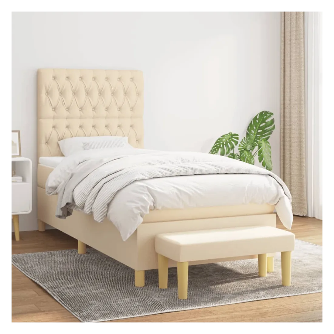 Sommier à lattes de lit avec matelas Crème 100x200 cm Tissu