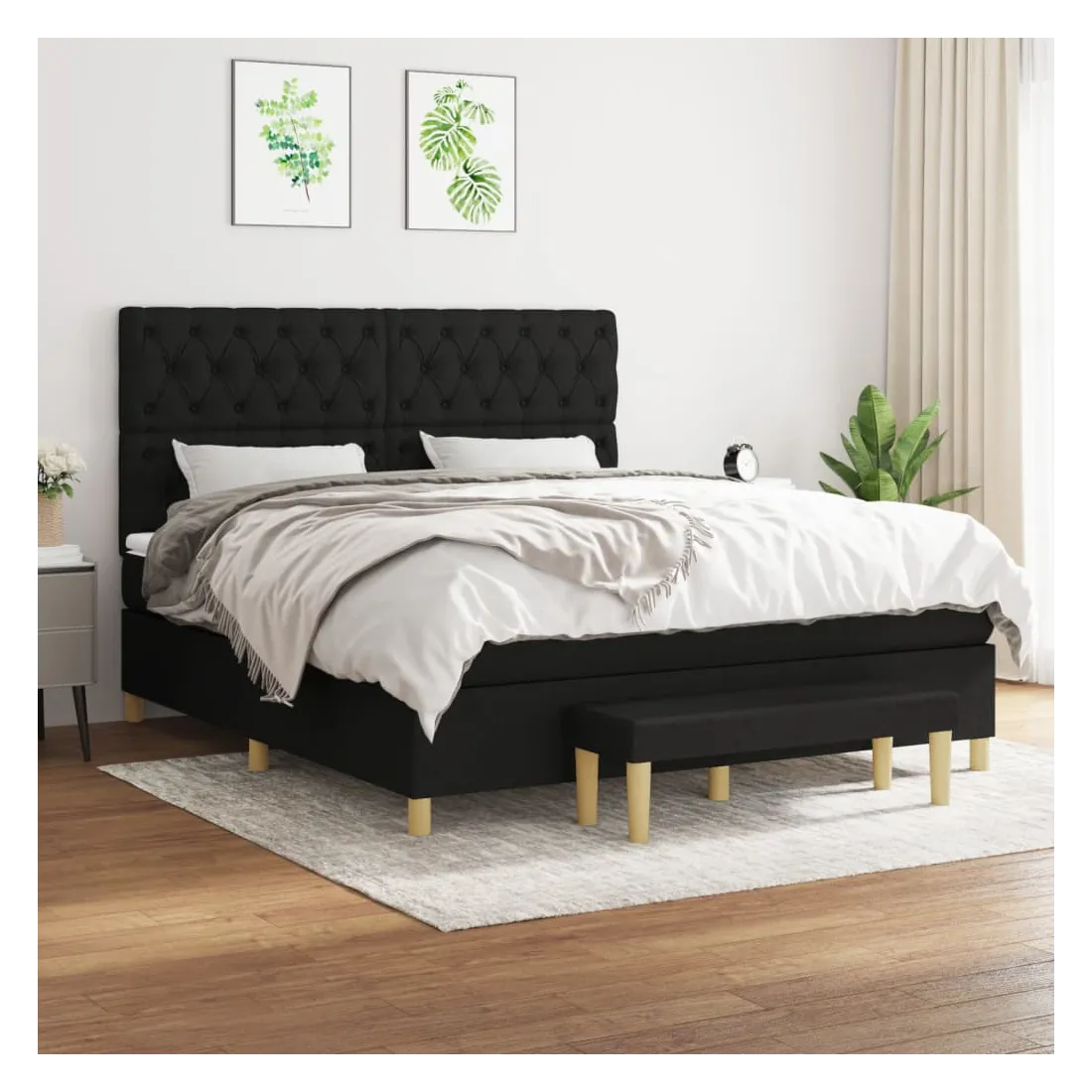 Utilisez ce lit à sommier pour profiter d'une nuit de sommeil réparatrice ! Il vous offre une relaxation maximale et un sommeil agréable. Tissu durable : le tissu présente un aspect simple et épuré, et il est respirant et durable.Tête de lit pratique : la tête de lit est réglable en hauteur selon vos préférences. La tête de lit vous offre un excellent soutien du dos lorsque vous êtes assis dans votre lit pour lire ou regarder la télévision.Matelas à ressorts ensachés : le ressort ensaché individuel intégré est connu pour sa très haute qualité tout en assurant un haut niveau de durabilité et d'adaptabilité. Il peut absorber efficacement le bruit et les chocs causés par les sauts et les rotations.Support moyen-dur : ce matelas de lit offre une stabilité accrue et juste le niveau de fermeté sans sacrifier le confort. Il est donc idéal pour les personnes qui dorment sur le dos ou sur le ventre.Protège-matelas doux pour la peau : le protège-matelas est recouvert d'un tissu résistant et doux pour la peau, ce qui le rend souple et confortable.Banc multifonctionnel : ce banc peut servir de siège supplémentaire dans votre maison. Il peut également être utilisé comme banc de bout de lit. Remarque :Pour des raisons d'hygiène, le matelas ne peut pas être retourné si l'emballage est retiré ou ouvert.Chaque produit est livré avec un manuel de montage dans la boîte pour un montage facile.
