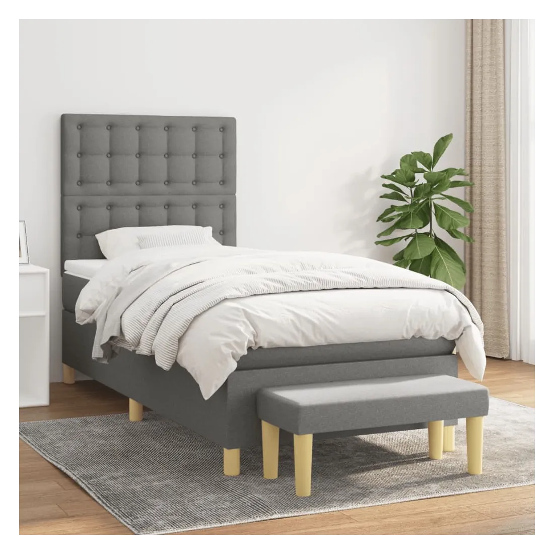 Utilisez ce lit à sommier pour profiter d'une nuit de sommeil réparatrice ! Il vous offre une relaxation maximale et un sommeil agréable. Tissu durable : le tissu présente un aspect simple et épuré, et il est respirant et durable.Tête de lit pratique : la tête de lit est réglable en hauteur selon vos préférences. La tête de lit vous offre un excellent soutien du dos lorsque vous êtes assis dans votre lit pour lire ou regarder la télévision.Matelas à ressorts ensachés : le ressort ensaché individuel intégré est connu pour sa très haute qualité tout en assurant un haut niveau de durabilité et d'adaptabilité. Il peut absorber efficacement le bruit et les chocs causés par les sauts et les rotations.Support moyen-dur : ce matelas de lit offre une stabilité accrue et juste le niveau de fermeté sans sacrifier le confort. Il est donc idéal pour les personnes qui dorment sur le dos ou sur le ventre.Protège-matelas doux pour la peau : le protège-matelas est recouvert d'un tissu résistant et doux pour la peau, ce qui le rend souple et confortable.Banc multifonctionnel : ce banc peut servir de siège supplémentaire dans votre maison. Il peut également être utilisé comme banc de bout de lit. Remarque :Pour des raisons d'hygiène, le matelas ne peut pas être retourné si l'emballage est retiré ou ouvert.Chaque produit est livré avec un manuel de montage dans la boîte pour un montage facile.
