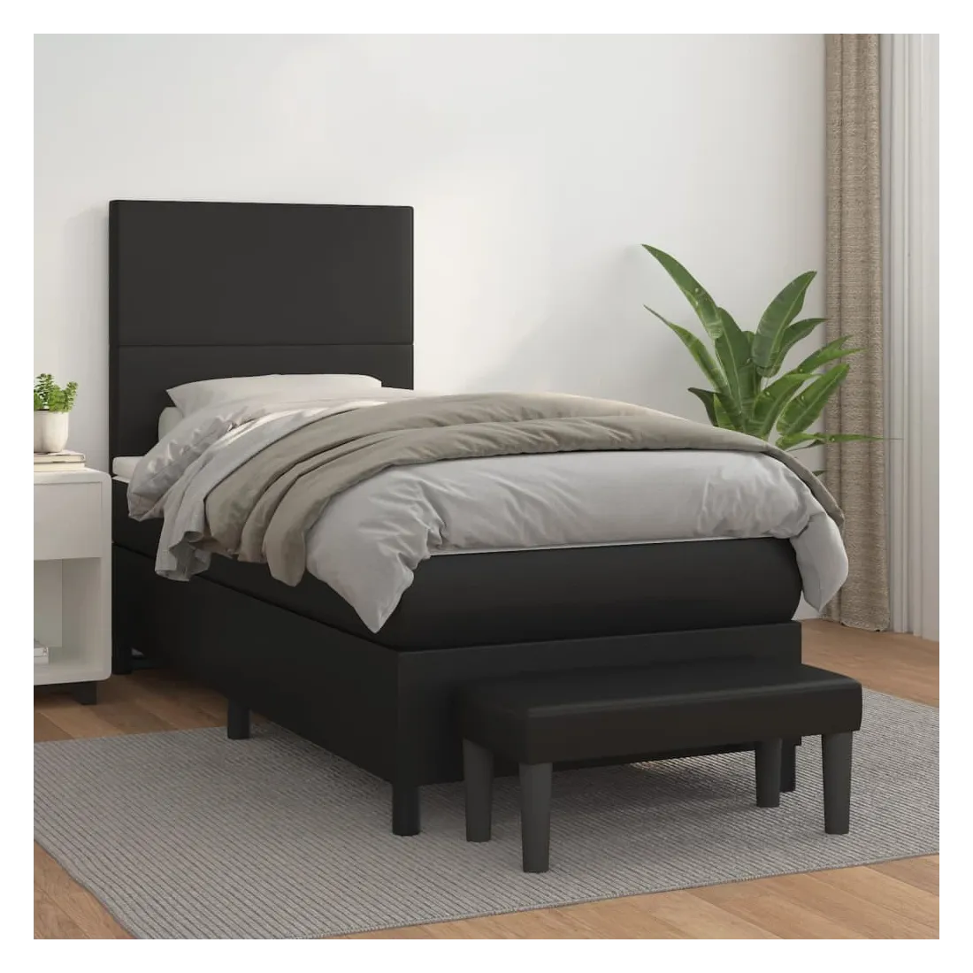 Sommier à lattes de lit avec matelas Noir 90x190 cm Similicuir