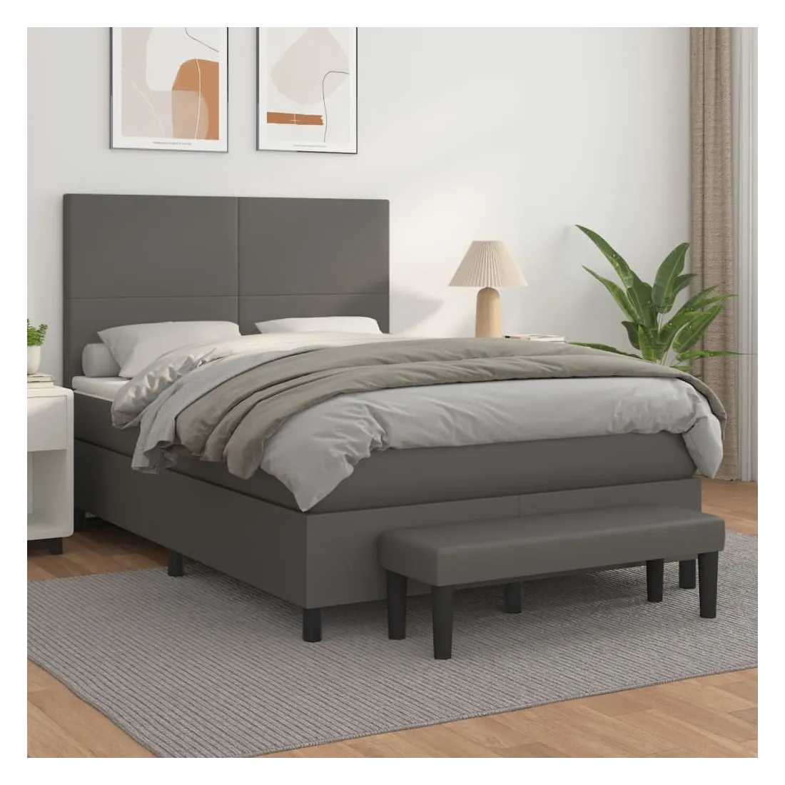 Sommier à lattes de lit avec matelas Gris 140x190 cm Similicuir