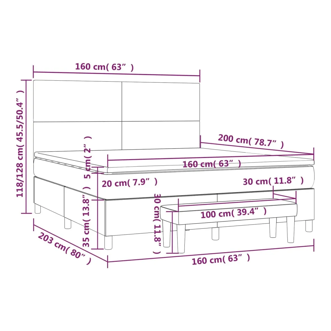 Utilisez ce lit à sommier pour profiter d'une nuit de sommeil réparatrice ! Il vous offre une relaxation maximale et un sommeil agréable. Similicuir durable : le similicuir de qualité supérieure est un matériau très durable. Il est résistant aux taches, ce qui le rend facile à nettoyer avec un chiffon humide. La surface lisse donne également un aspect luxueux et la beauté du cuir véritable.Tête de lit pratique : la tête de lit est réglable en hauteur selon vos préférences. La tête de lit vous offre un excellent soutien du dos lorsque vous êtes assis dans votre lit pour lire ou regarder la télévision.Matelas à ressorts ensachés : le ressort ensaché individuel intégré est connu pour sa très haute qualité tout en assurant un haut niveau de durabilité et d'adaptabilité. Il peut absorber efficacement le bruit et les chocs causés par les sauts et les rotations.Support moyen-dur : ce matelas de lit offre une stabilité accrue et juste le niveau de fermeté sans sacrifier le confort. Il est donc idéal pour les personnes qui dorment sur le dos ou sur le ventre.Protège-matelas doux pour la peau : le protège-matelas est recouvert d'un tissu résistant et doux pour la peau, ce qui le rend souple et confortable.Banc multifonctionnel : ce banc peut servir de siège supplémentaire dans votre maison. Il peut également être utilisé comme banc de bout de lit. Remarque :Pour des raisons d'hygiène, le matelas ne peut pas être retourné si l'emballage est retiré ou ouvert.Chaque produit est livré avec un manuel de montage dans la boîte pour un montage facile.