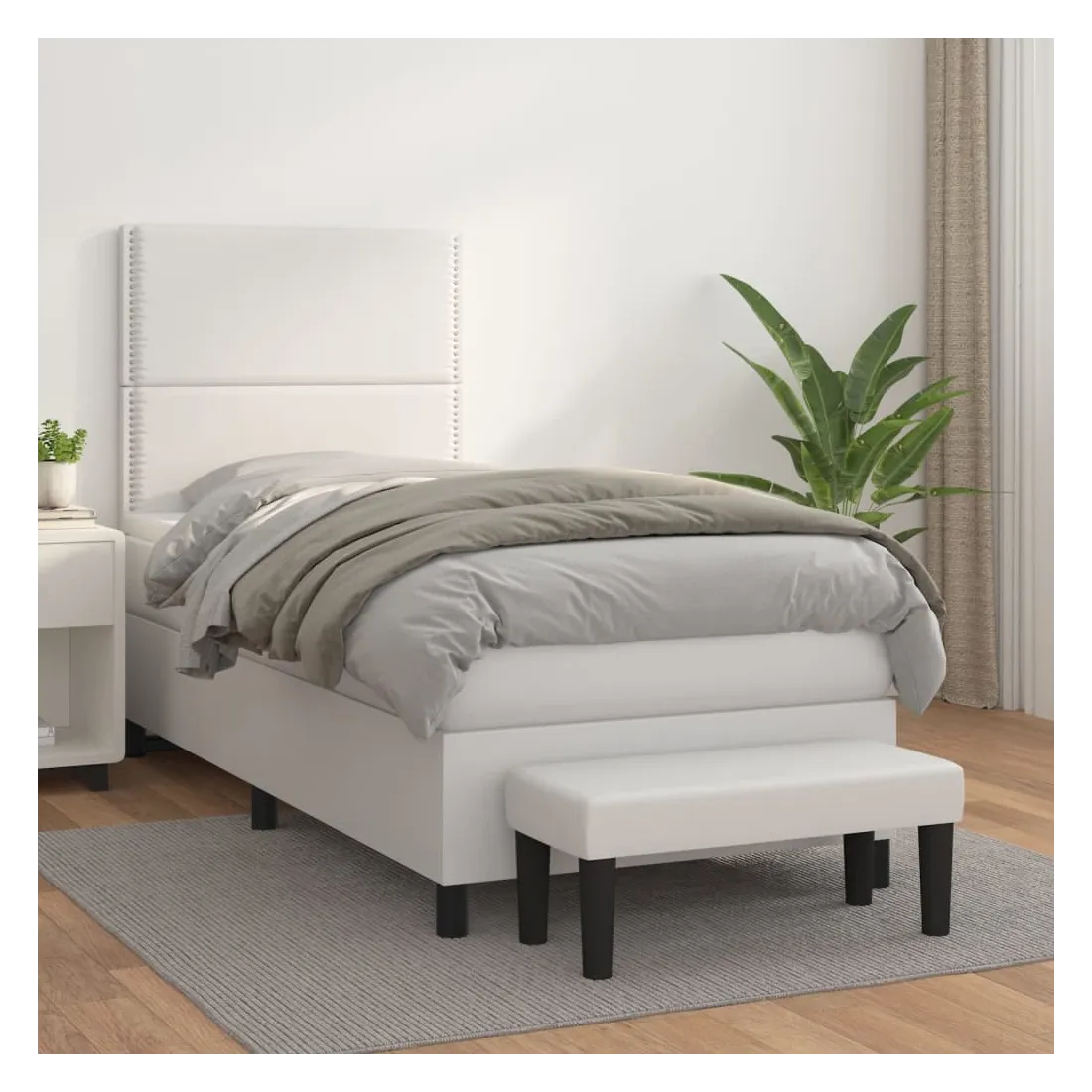 Sommier à lattes de lit avec matelas Blanc 90x190 cm Similicuir