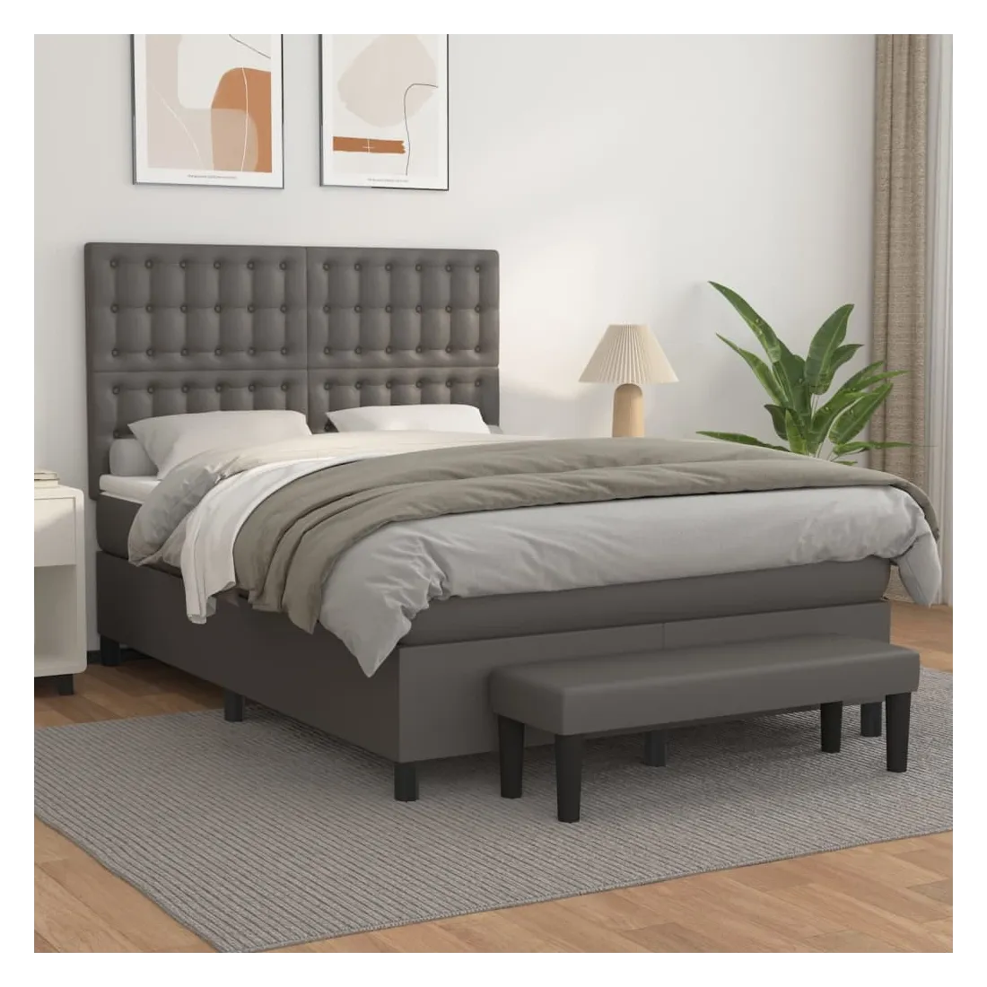Sommier à lattes de lit avec matelas Gris 140x190 cm Similicuir