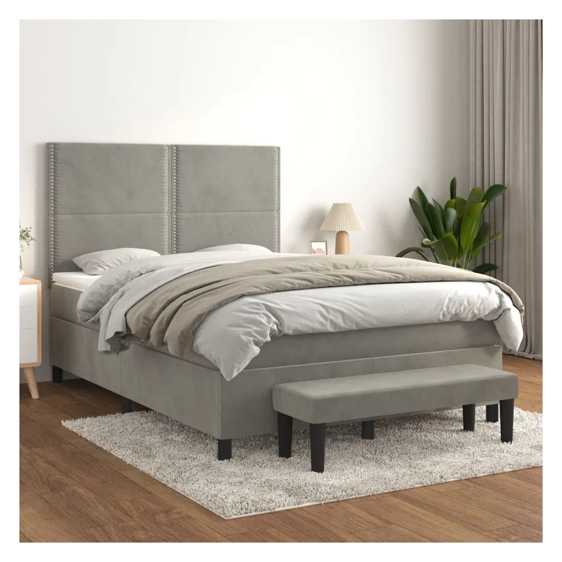 Sommier à lattes de lit et matelas Gris clair 140x200cm Velours