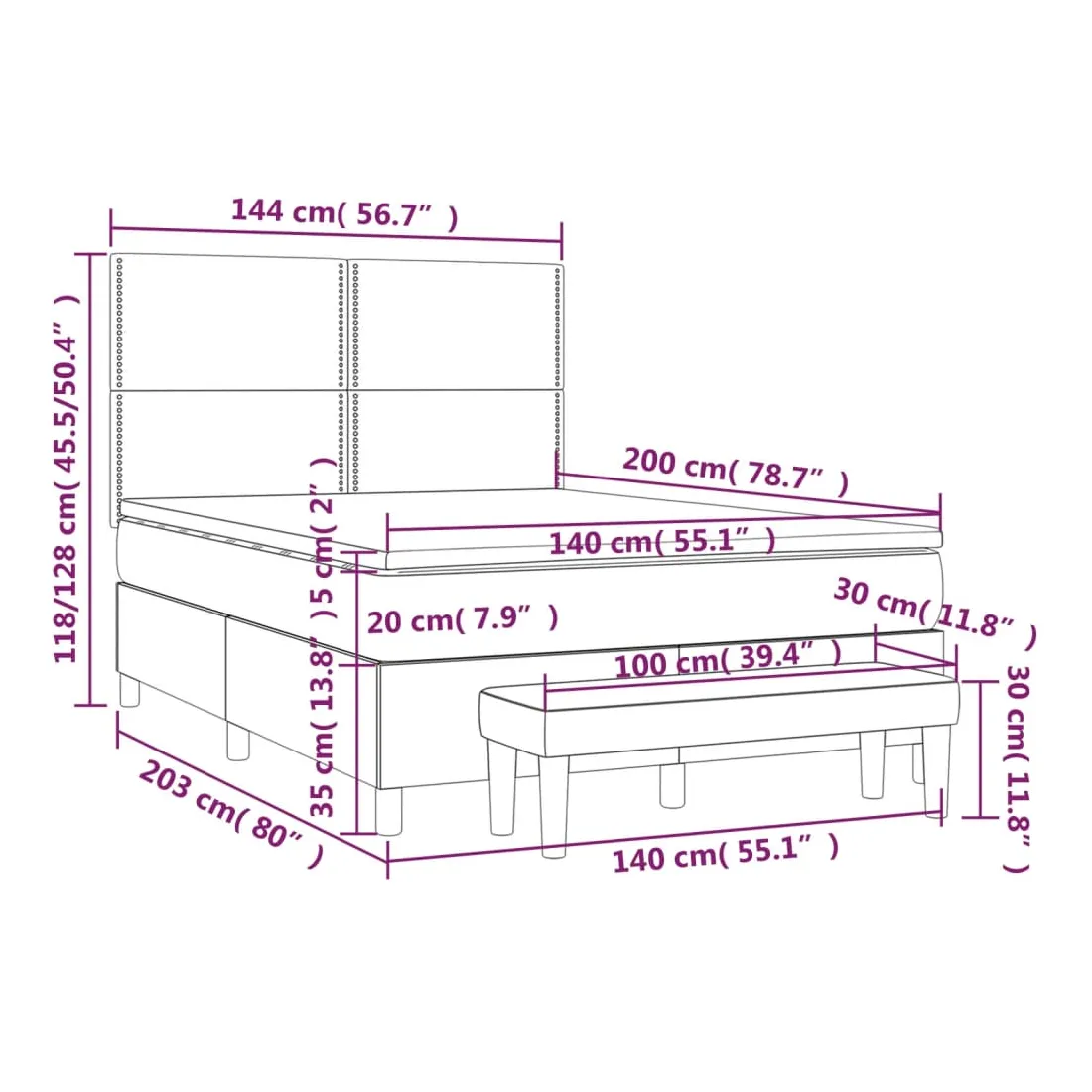 • Dimensions : 140 x 200 x 20 cm (l x L x H)