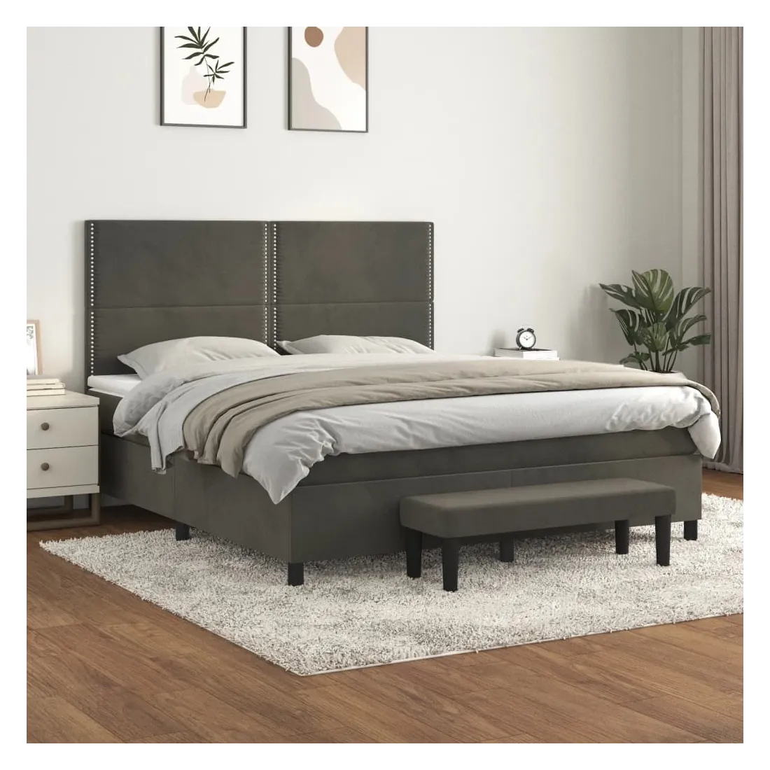 Utilisez ce lit à sommier pour profiter d'une nuit de sommeil réparatrice ! Il vous offre une relaxation maximale et un sommeil agréable. Velours doux : le velours est un tissu doux et luxueux qui se reconnaît à son tas dense de fibres uniformément coupées qui ont une touche lisse. Le tissu en velours présente un toucher doux distinctif, ce qui le rend confortable au toucher.Tête de lit pratique : la tête de lit est réglable en hauteur selon vos préférences. La tête de lit vous offre un excellent soutien du dos lorsque vous êtes assis dans votre lit pour lire ou regarder la télévision.Matelas à ressorts ensachés : le ressort ensaché individuel intégré est connu pour sa très haute qualité tout en assurant un haut niveau de durabilité et d'adaptabilité. Il peut absorber efficacement le bruit et les chocs causés par les sauts et les rotations.Support moyen-dur : ce matelas de lit offre une stabilité accrue et juste le niveau de fermeté sans sacrifier le confort. Il est donc idéal pour les personnes qui dorment sur le dos ou sur le ventre.Protège-matelas doux pour la peau : le protège-matelas est recouvert d'un tissu résistant et doux pour la peau, ce qui le rend souple et confortable.Banc multifonctionnel : ce banc peut servir de siège supplémentaire dans votre maison. Il peut également être utilisé comme banc de bout de lit. Remarque :Pour des raisons d'hygiène, le matelas ne peut pas être retourné si l'emballage est retiré ou ouvert.Chaque produit est livré avec un manuel de montage dans la boîte pour un montage facile.
