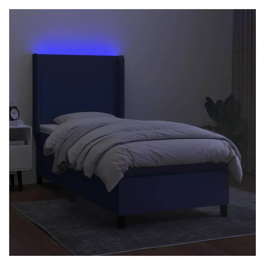 Sommier à lattes de lit matelas et LED Bleu 90x200 cm Tissu
