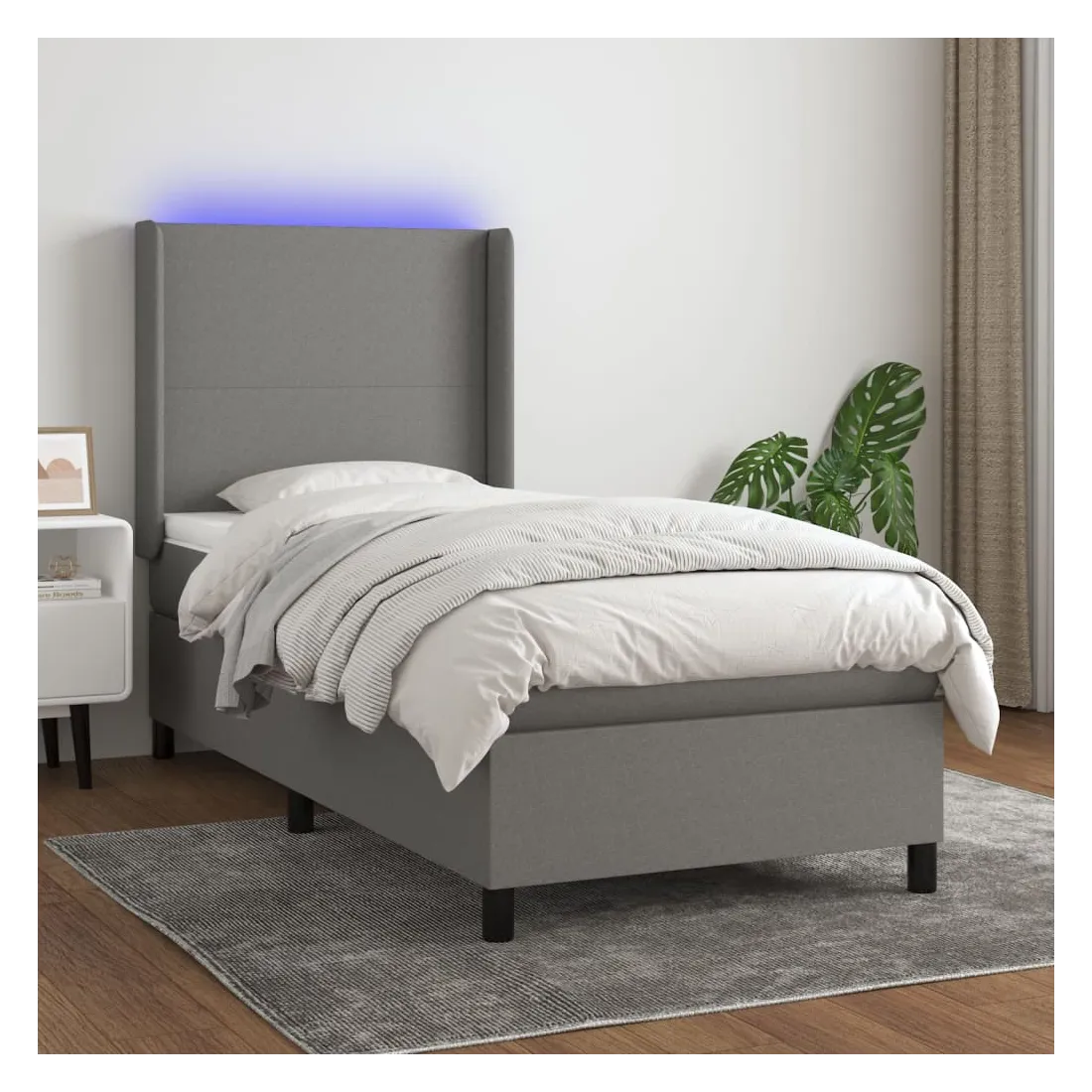 Utilisez ce sommier tapissier avec matelas et LED pour profiter d'un sommeil réparateur ! C'est le point central de votre chambre à coucher. Tissu durable : le tissu présente un aspect simple et épuré, et il est respirant et durable.Tête de lit pratique : la tête de lit est réglable en hauteur selon vos préférences. La tête de lit vous offre un excellent soutien du dos lorsque vous êtes assis dans votre lit pour lire ou regarder la télévision.Bande LED colorée : apportez de l'éclairage dans l'obscurité avec des lumières LED colorées !Matelas à ressorts ensachés : le ressort ensaché individuel intégré est connu pour sa très haute qualité tout en assurant un haut niveau de durabilité et d'adaptabilité. Il peut absorber efficacement le bruit et les chocs causés par les sauts et les rotations.Protège-matelas doux pour la peau : le protège-matelas est recouvert d'un tissu résistant et doux pour la peau, ce qui le rend souple et confortable. Remarque :Pour des raisons d'hygiène, le matelas ne peut pas être retourné si l'emballage est retiré ou ouvert.Seule la partie avec un symbole de ciseaux peut être coupée et seule la partie avec l'USB continuera à fonctionner comme avant.Chaque produit est livré avec un manuel de montage dans la boîte pour un montage facile.Ce produit est doté d'un connecteur USB, mais la source d'alimentation certifiée de USB 5V n'est pas incluse.